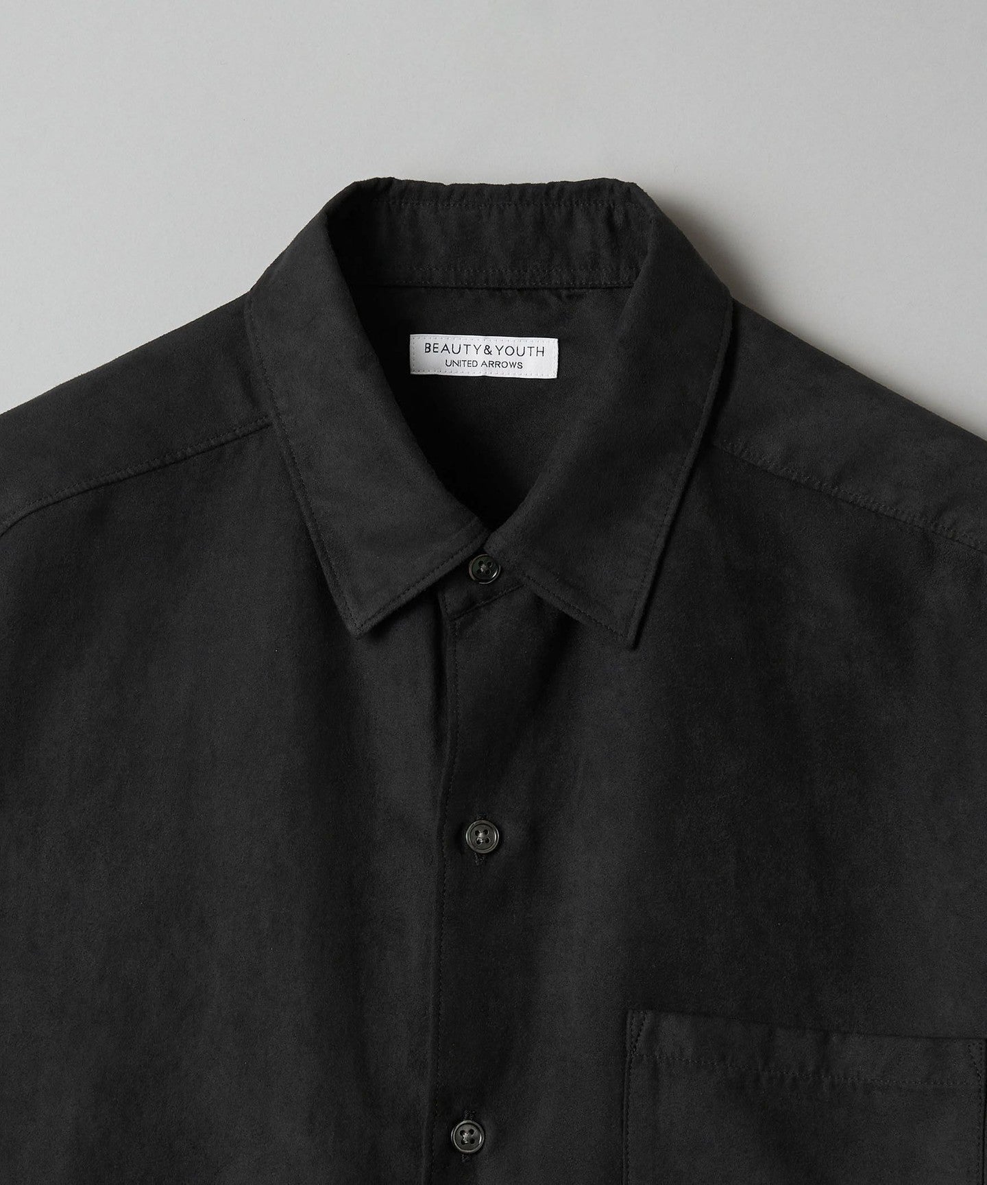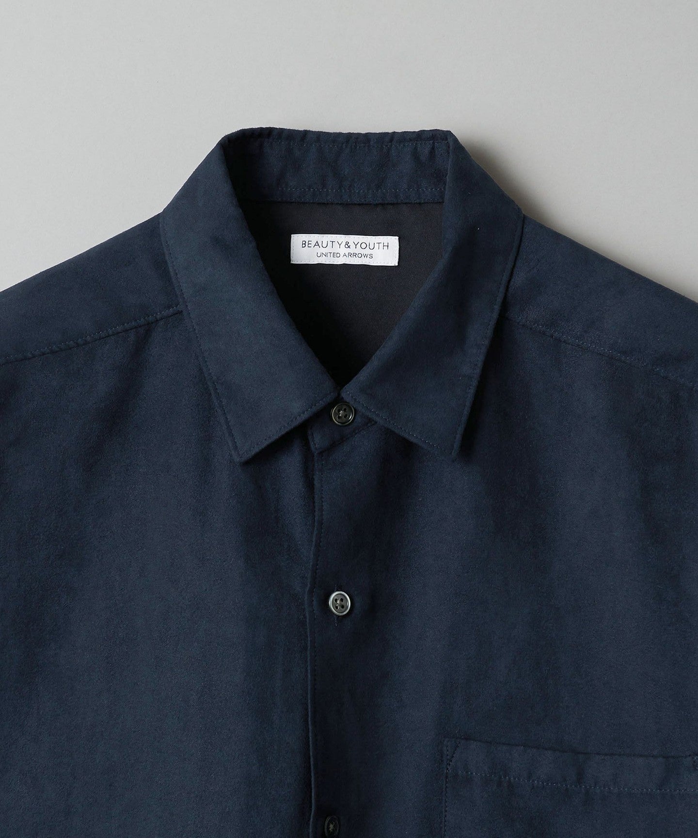 A regular collar shirt with a suede-like, matte, brushed feel.