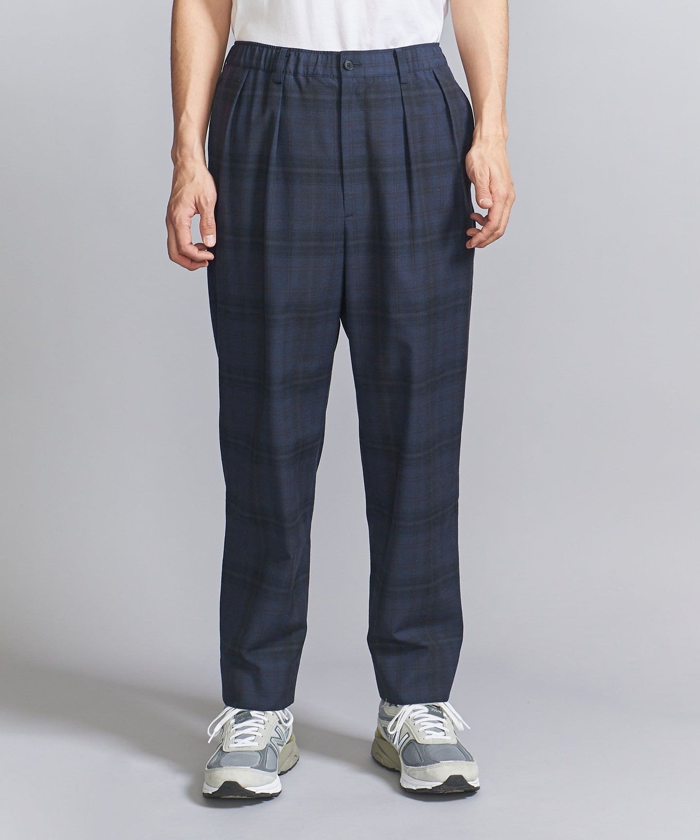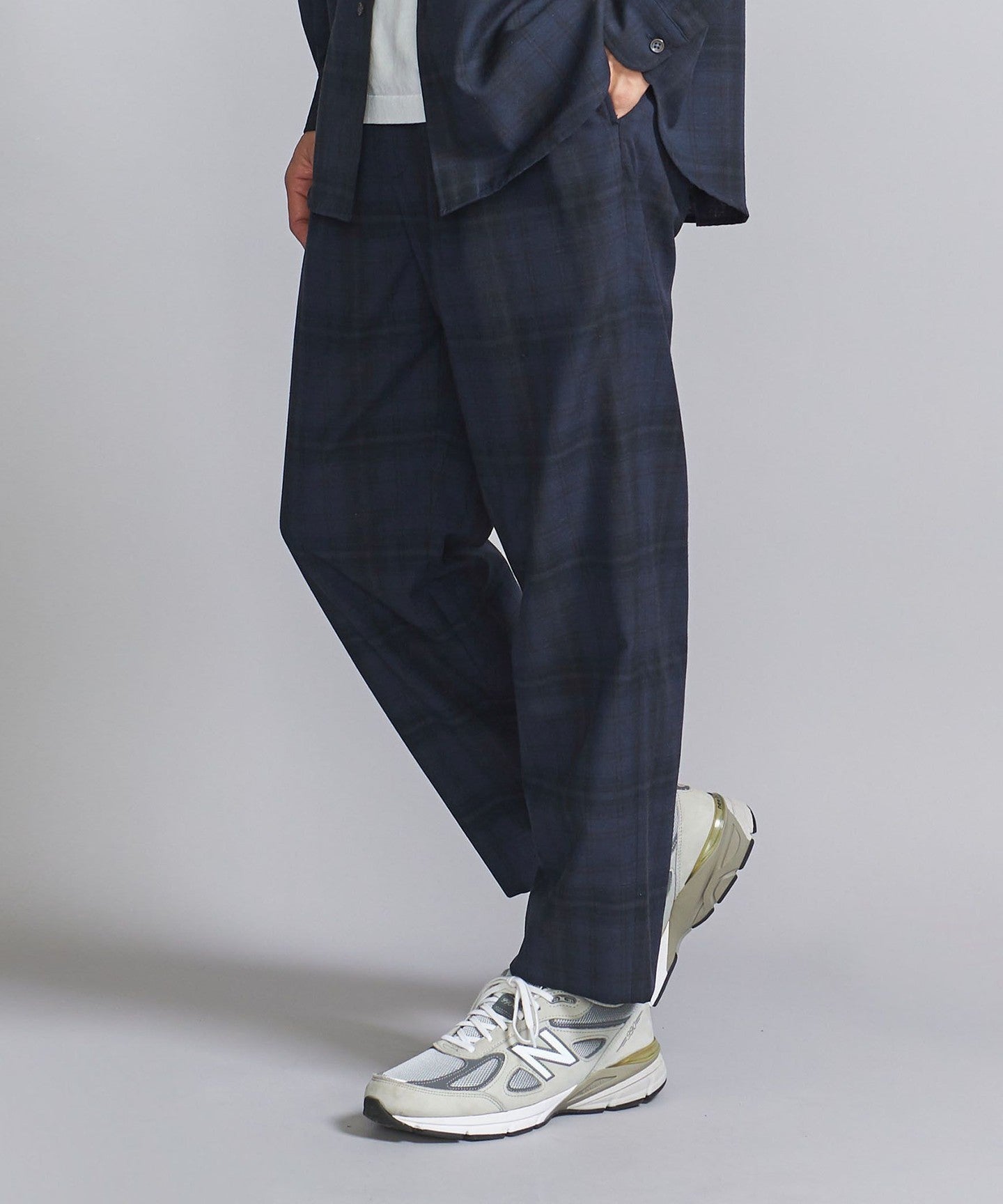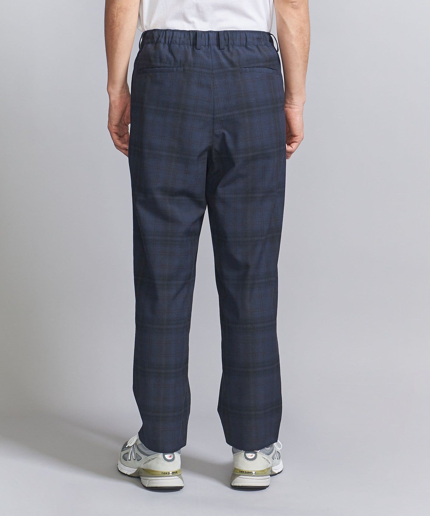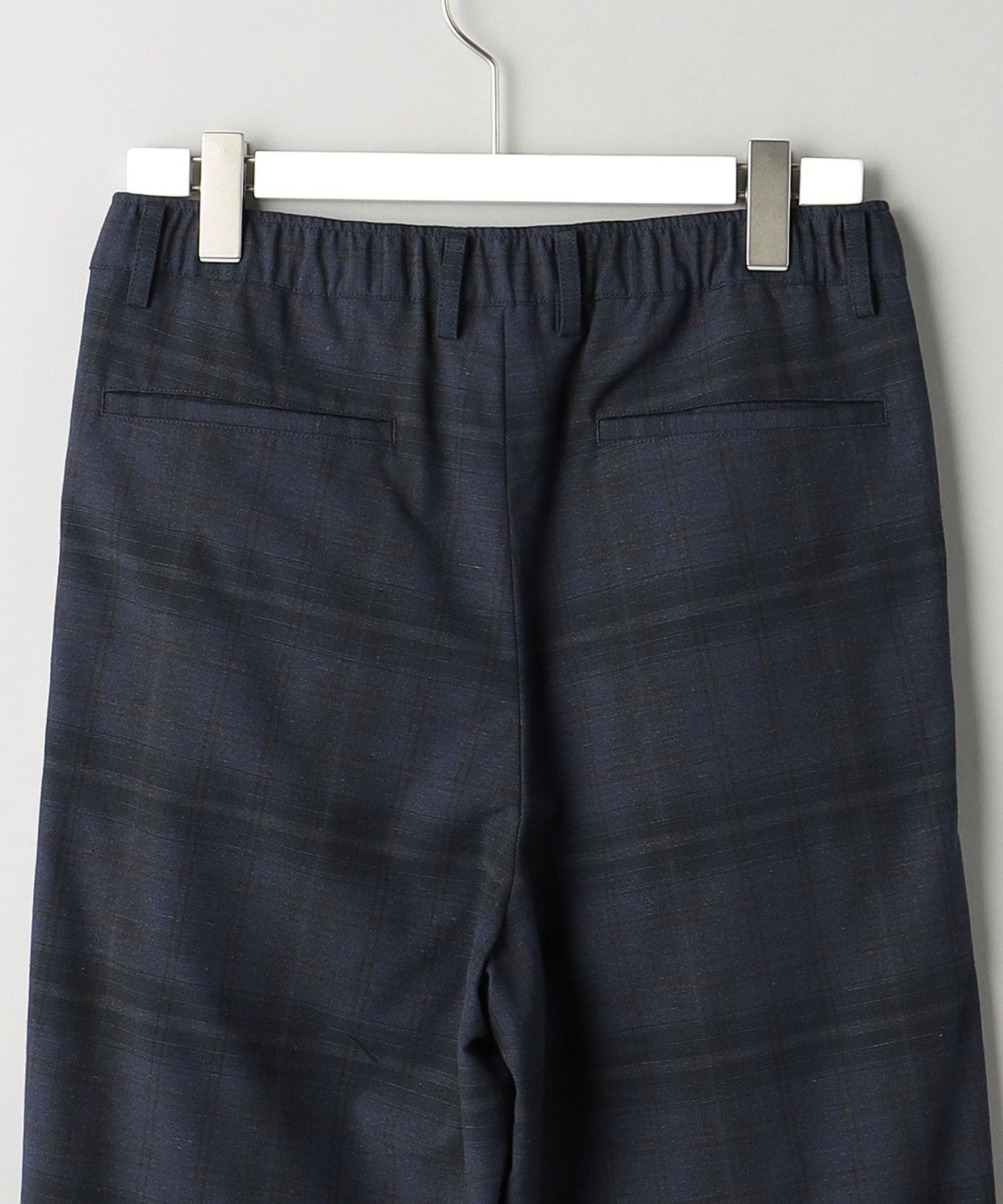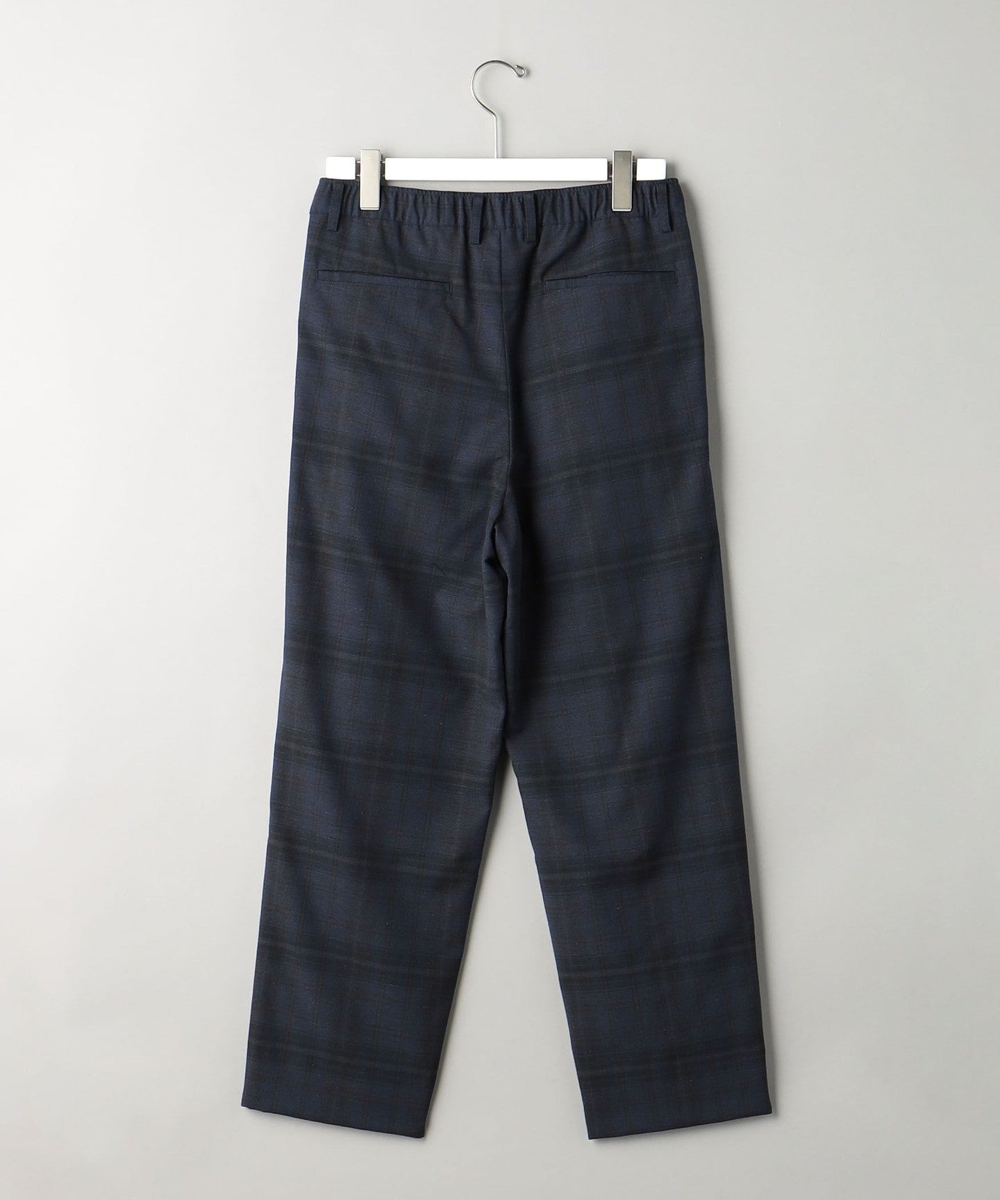 Easy slacks with an abstract check pattern that has a subtle nuance.