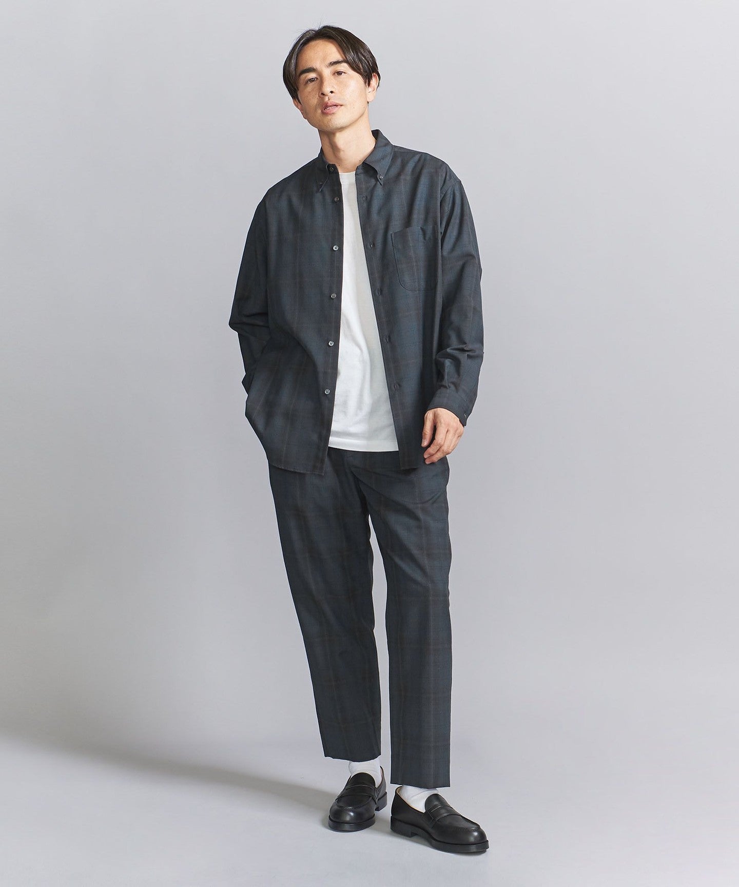 Clean casual TIE A chic ombré check easy that matches the look.PANTS