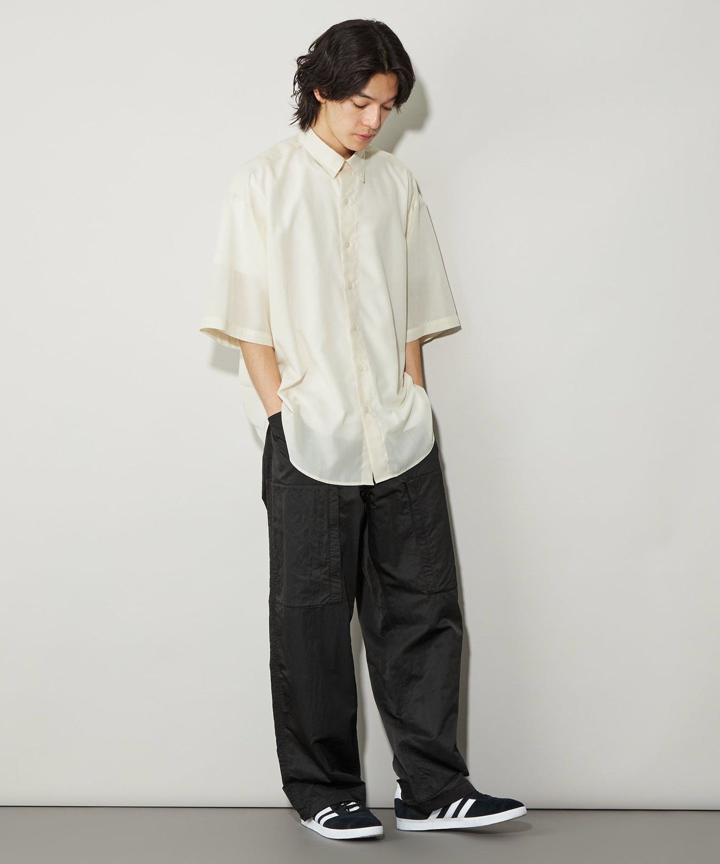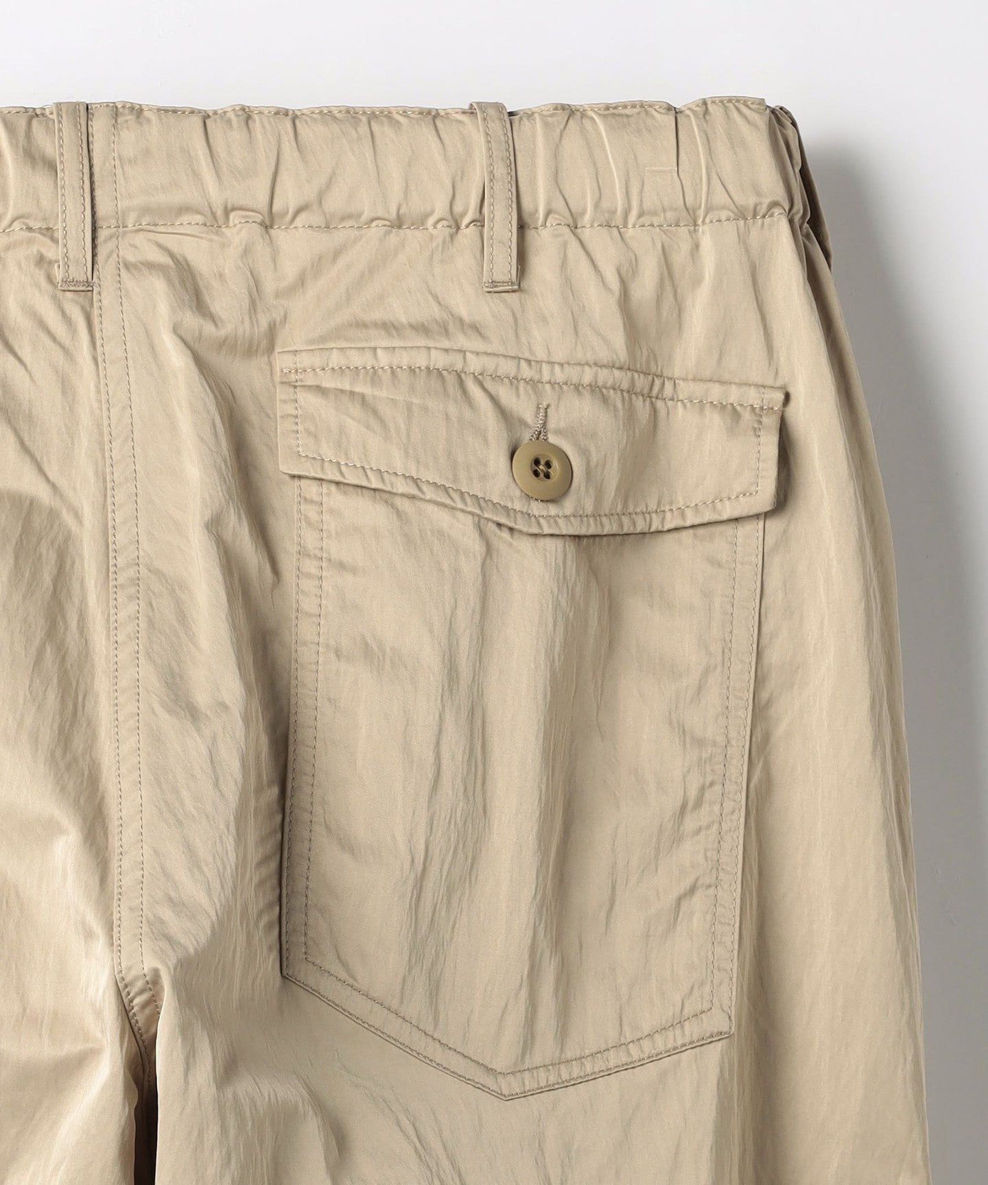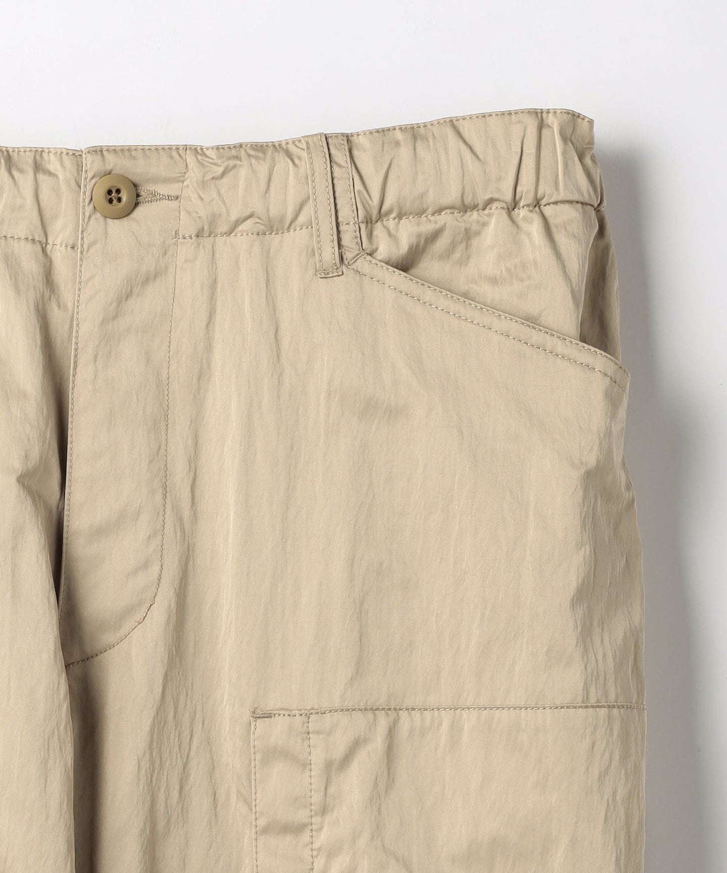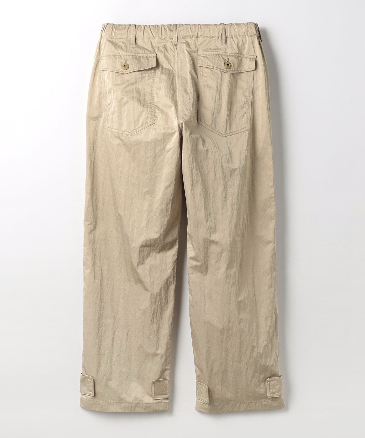 These are casual cargo pants, but the beautiful texture of the material allows for a wide range of coordination options.