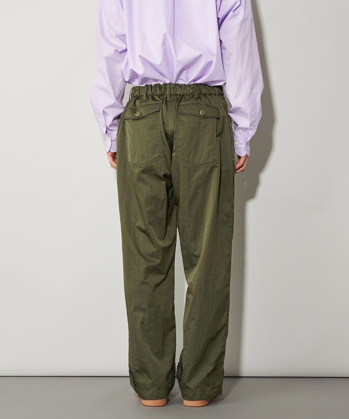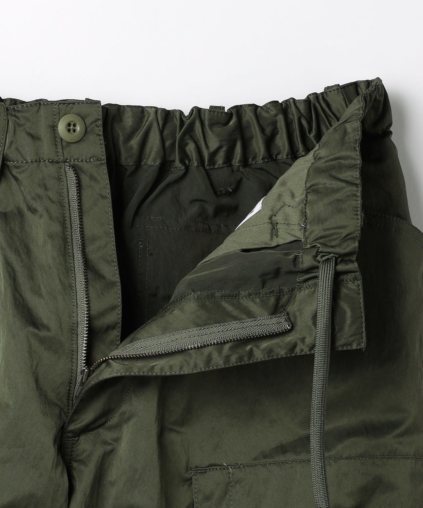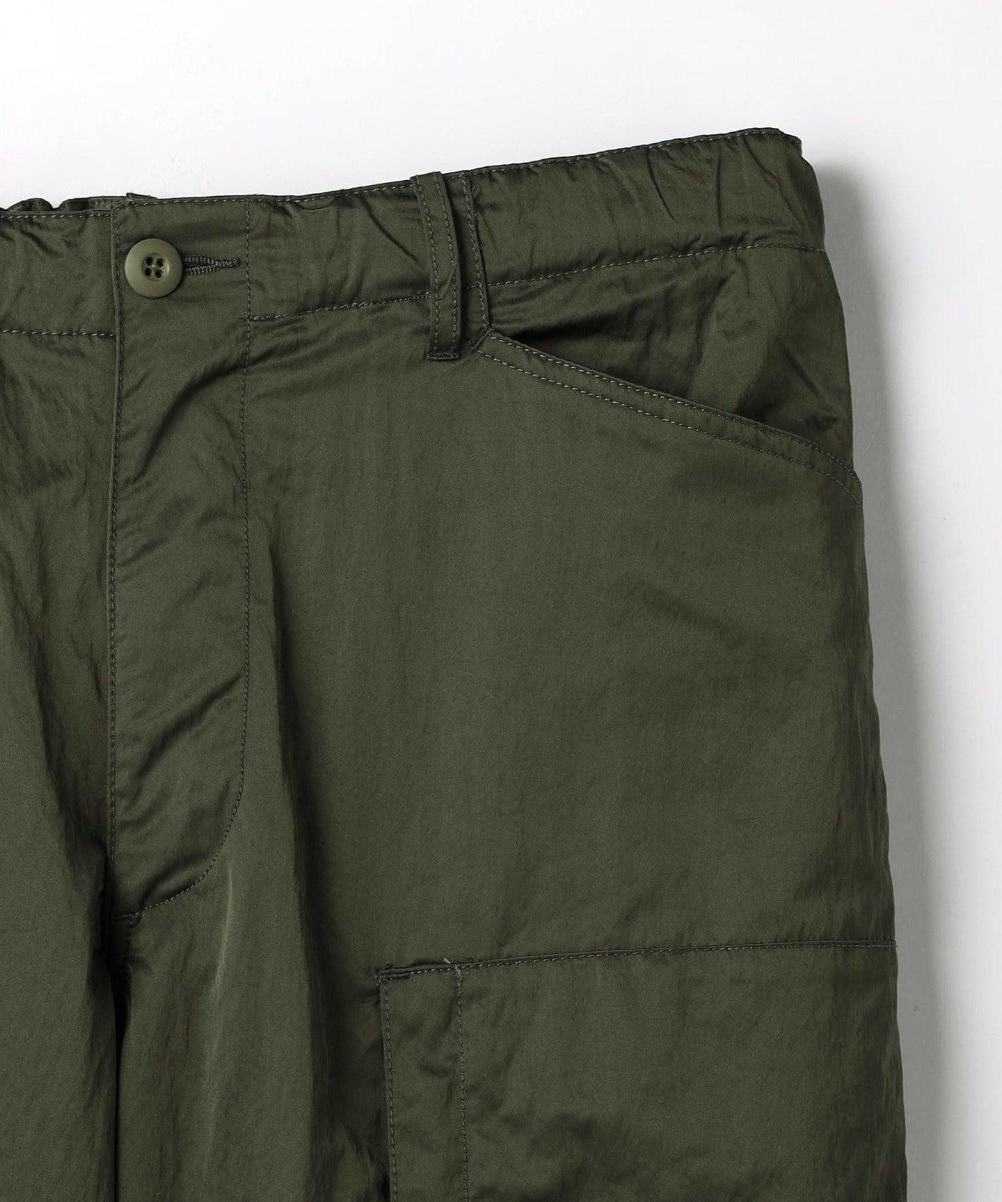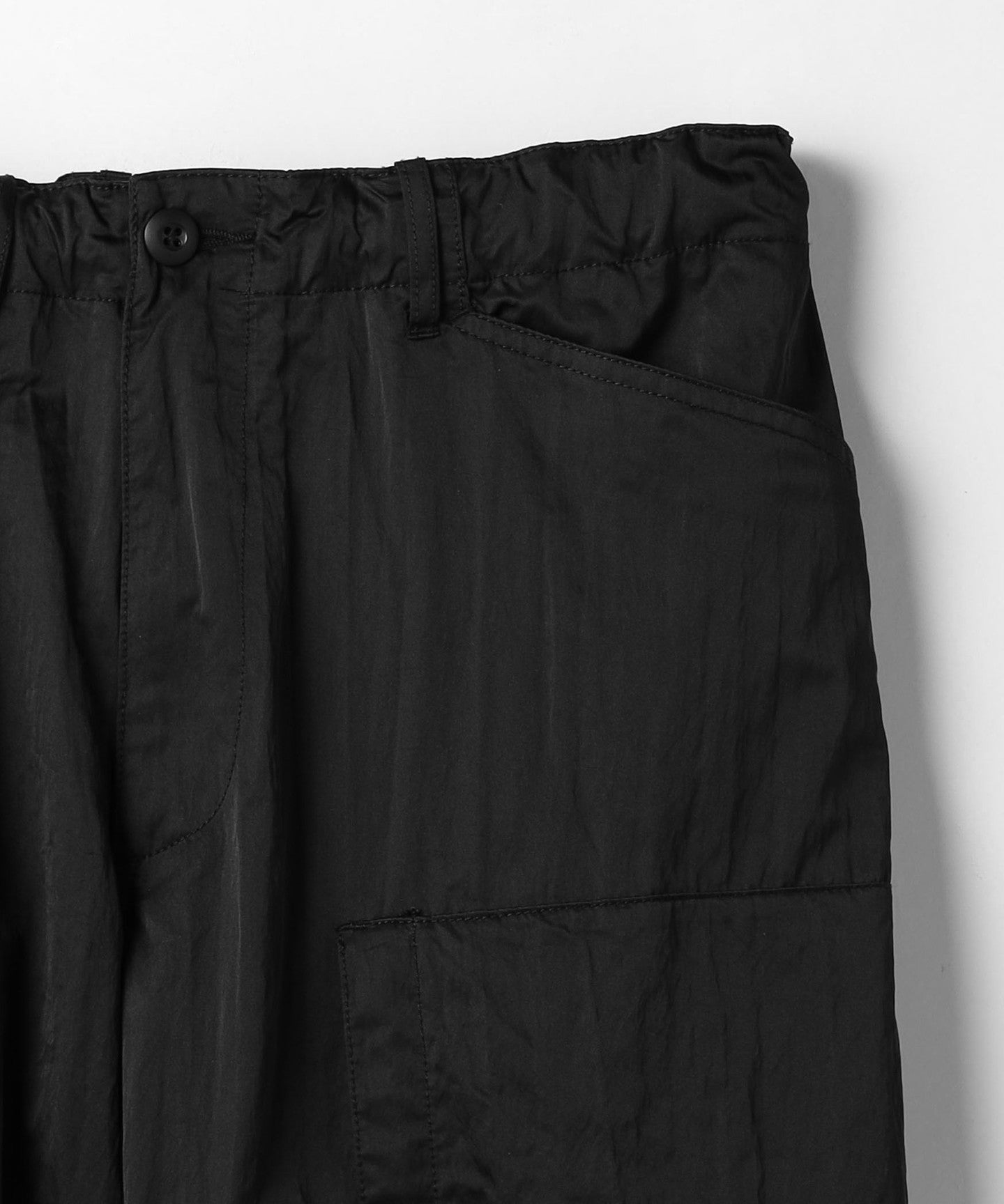These are casual cargo pants, but the beautiful texture of the material allows for a wide range of coordination options.