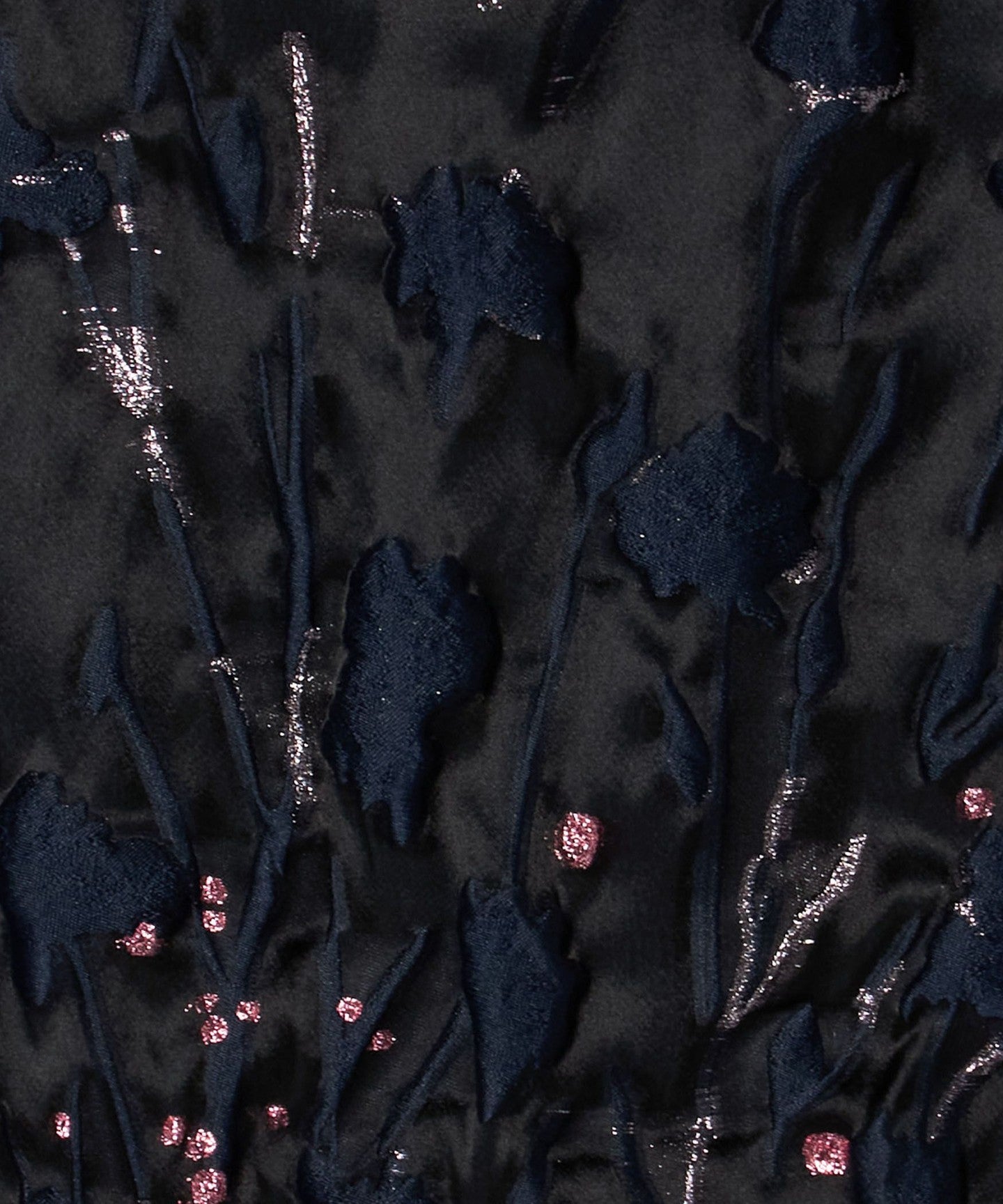A straight skirt featuring floral jacquard material that gives a three-dimensional look.