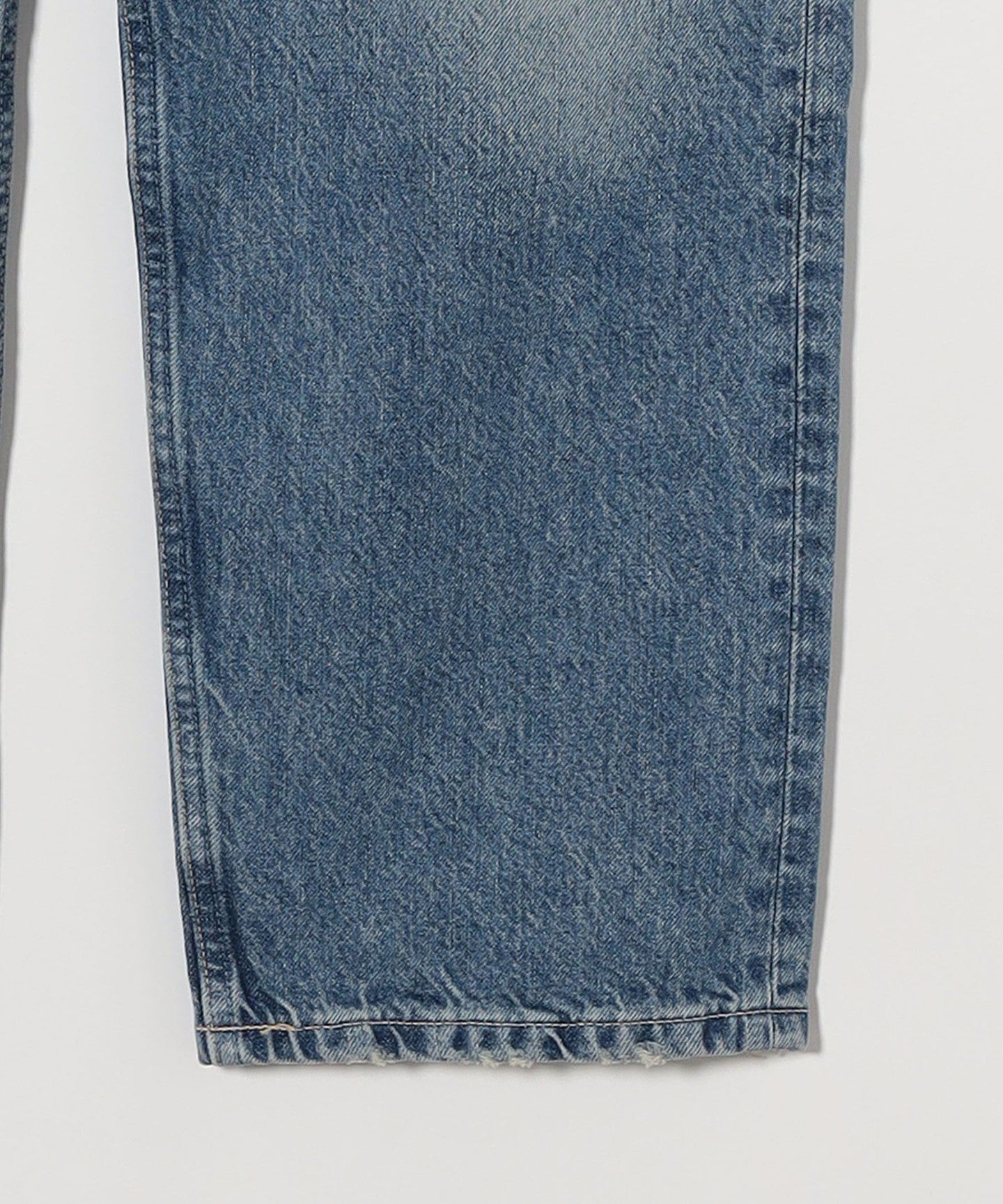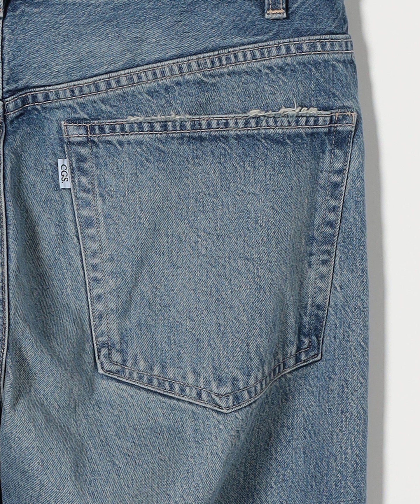 Five-pocket denim pants with a distressed finish inspired by vintage denim.