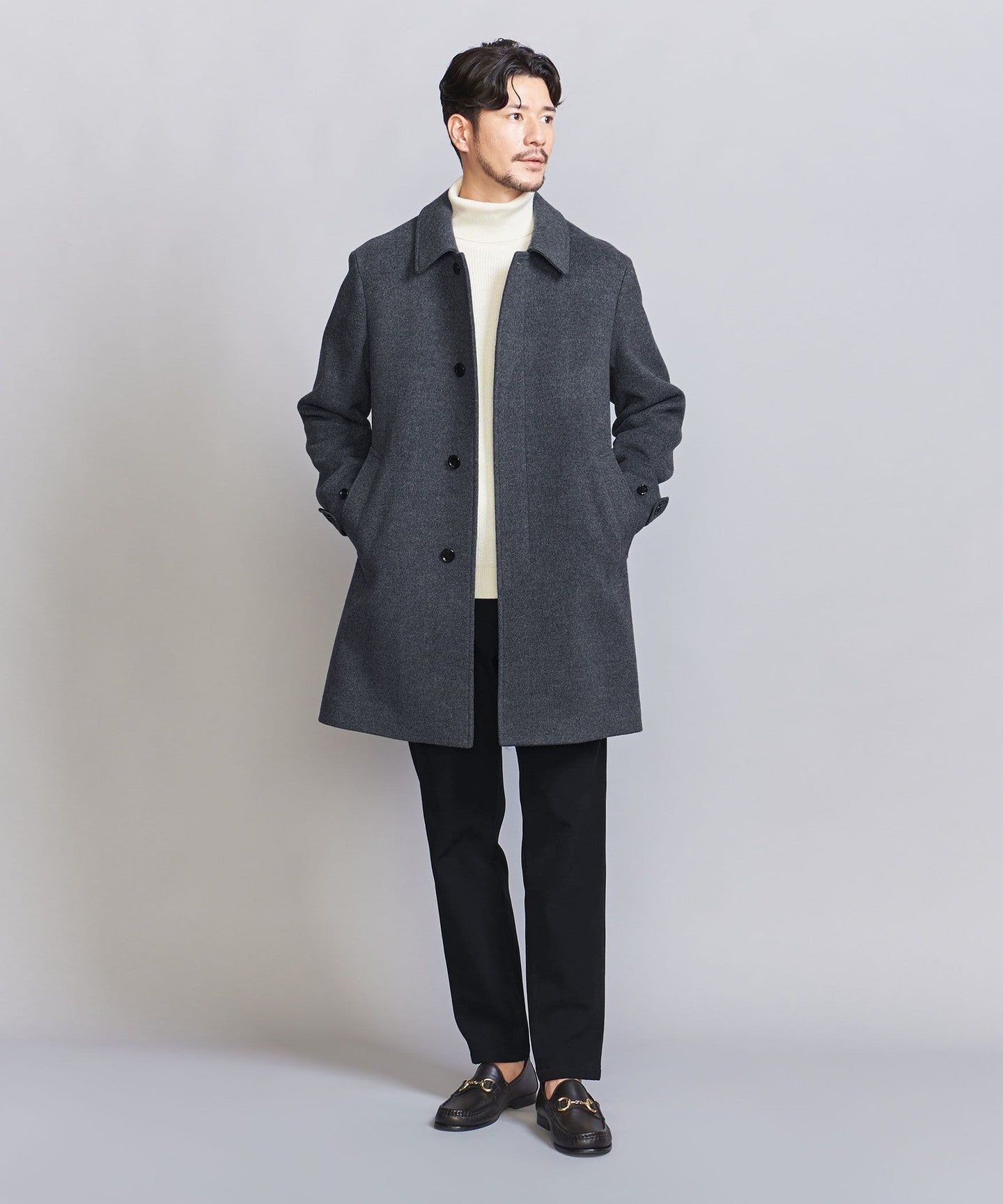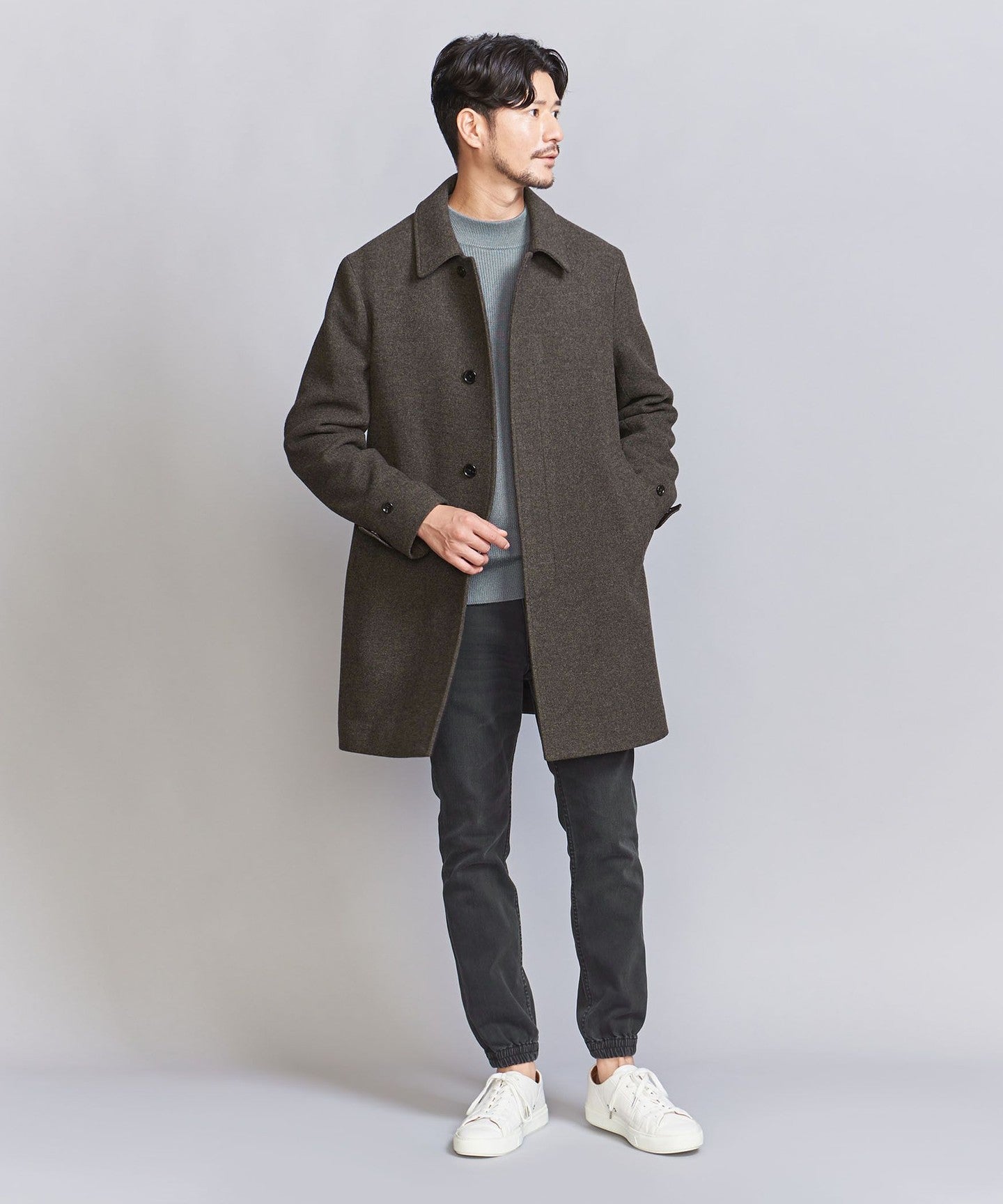 The bal collar coat, a representative men's coat, is characterized by its versatility, as it can be worn as an outer layer in a set or paired with jeans without looking out of place.