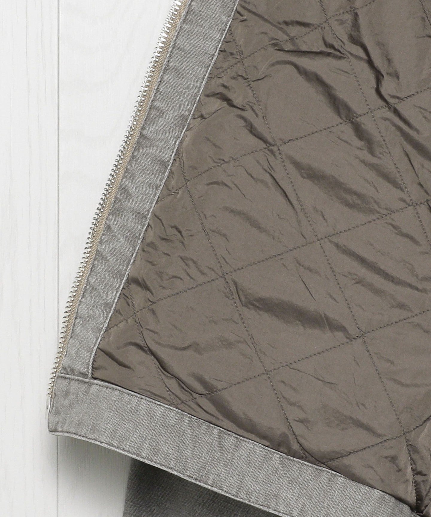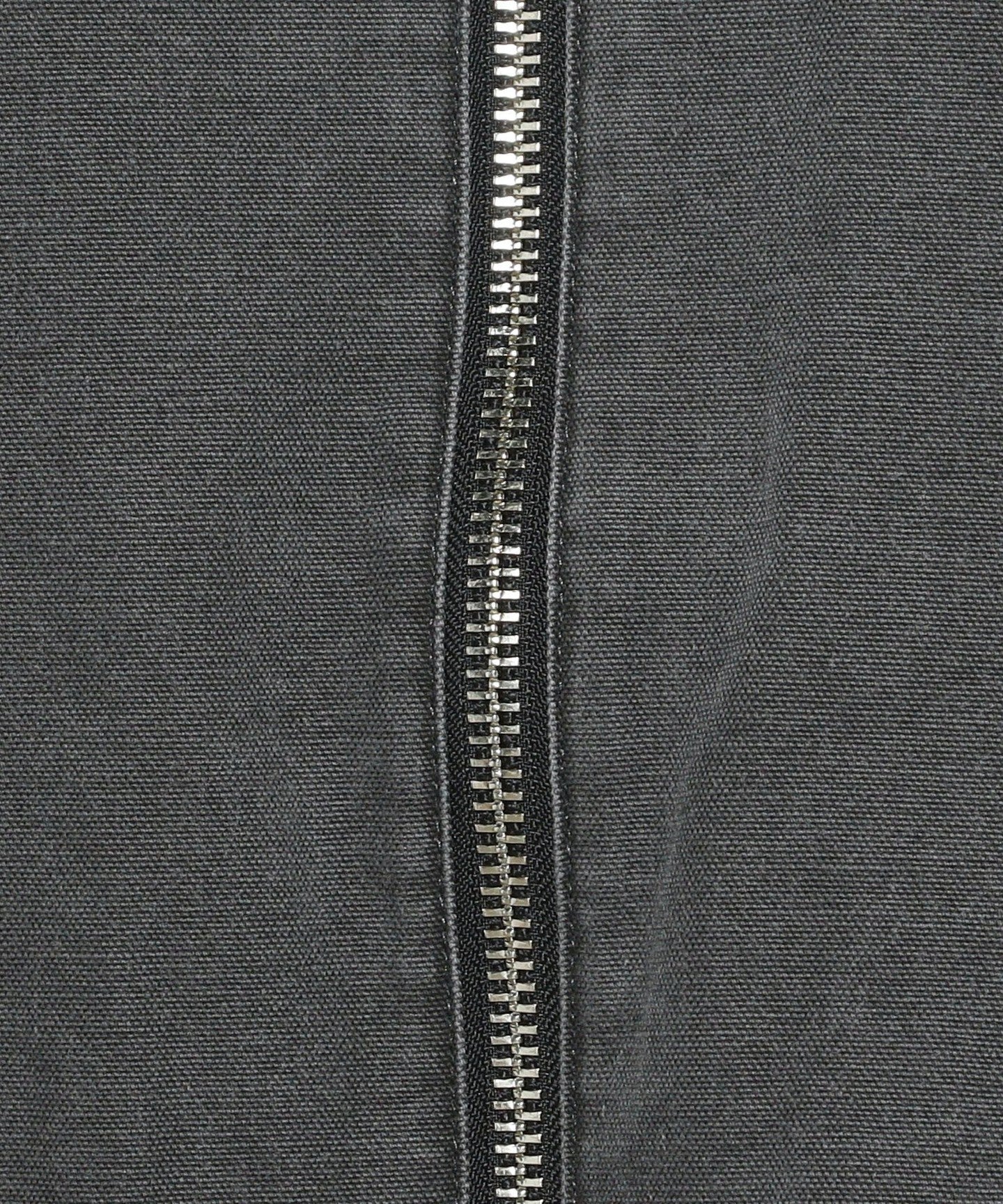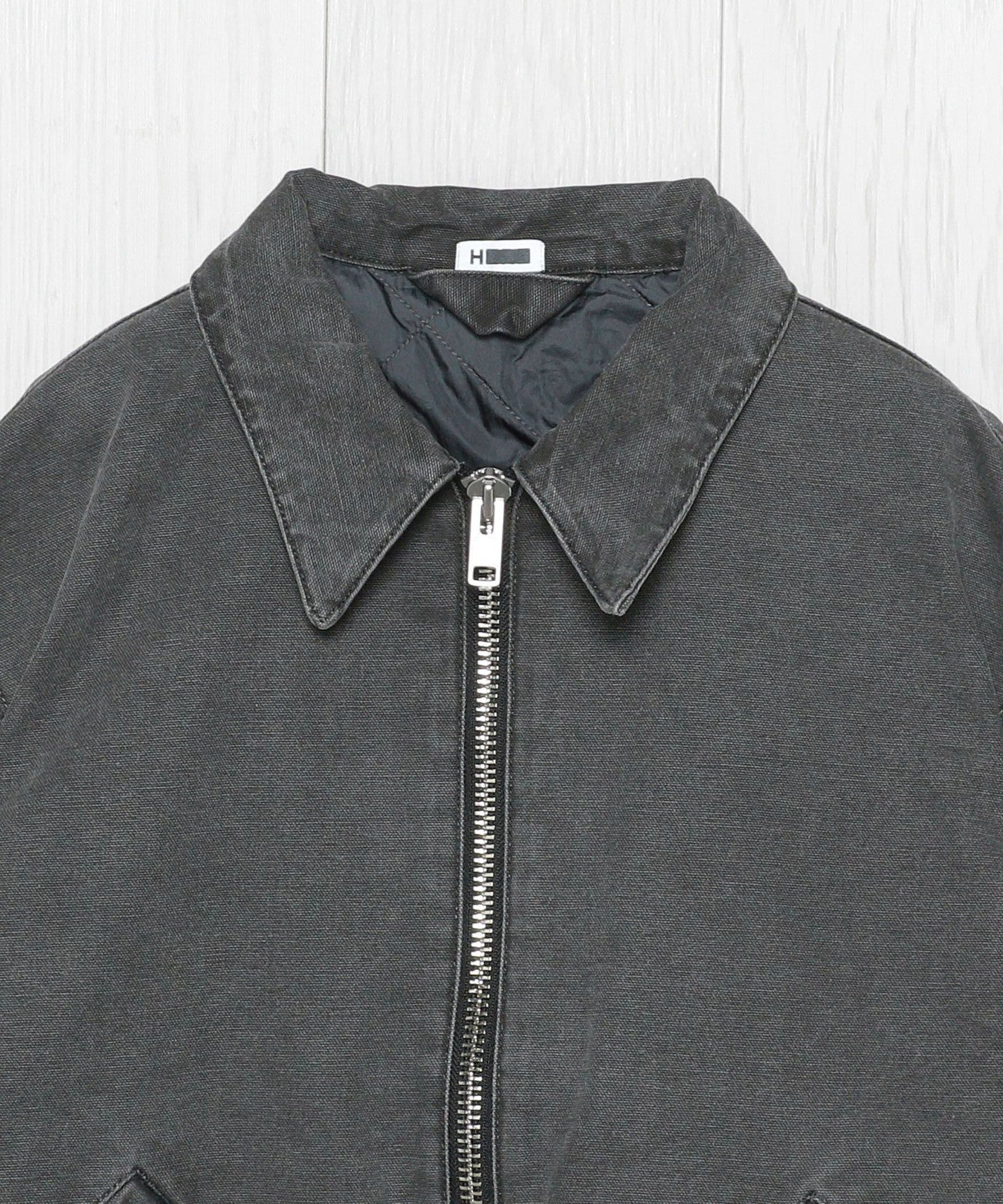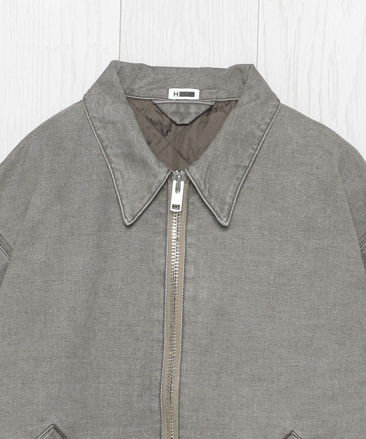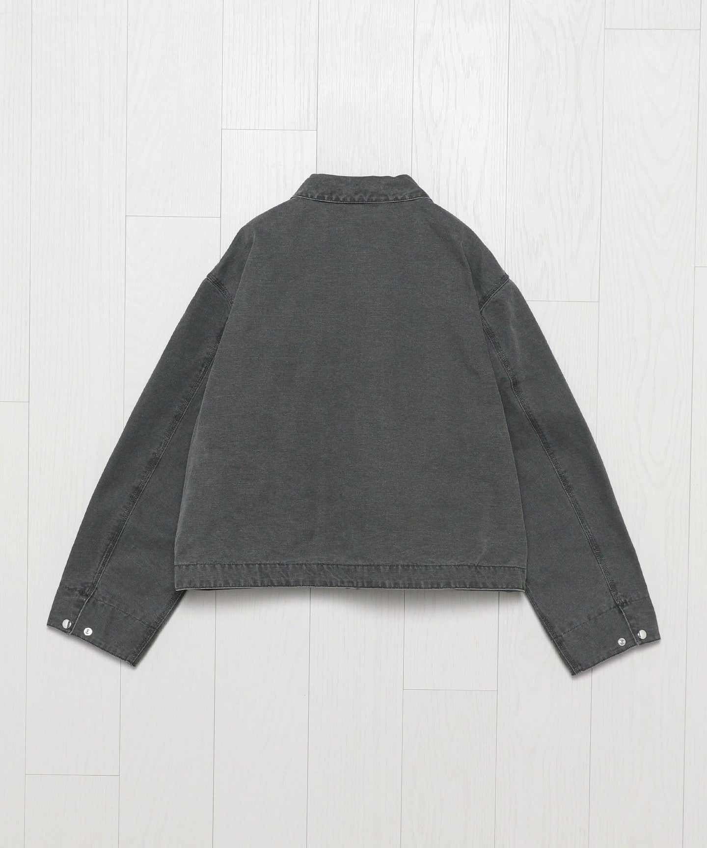 This zip-up jacket is based on a classic 70s sports jacket. It's pigment-dyed from textured cotton duck with uneven yarns, then treated with a stone bio-wash to fade it white and create a worn look. It's lighter than it looks, with a washed nylon taffeta liner quilted with ultra-thin padding. The short length and long sleeves create a striking silhouette, making it a simple yet versatile piece that can be worn casually or as a more sophisticated style.