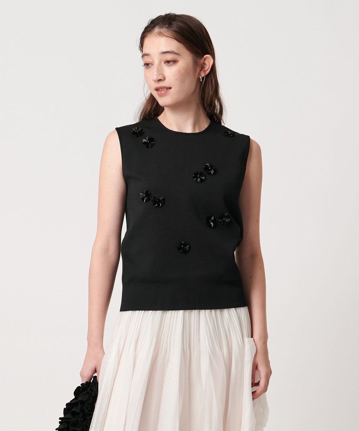 LARGETextured sequins and TULLE Flower MOTIF By applying LARGE Human femininity TIE It creates a unique atmosphere.