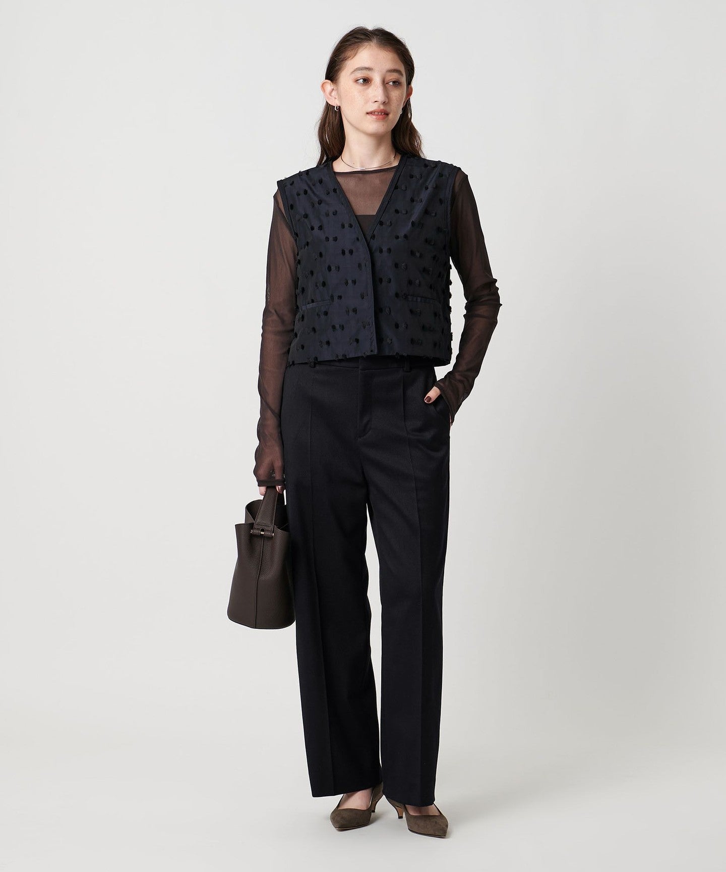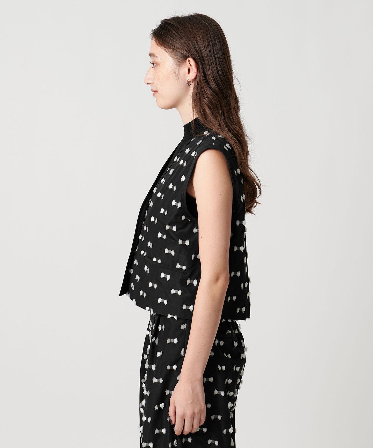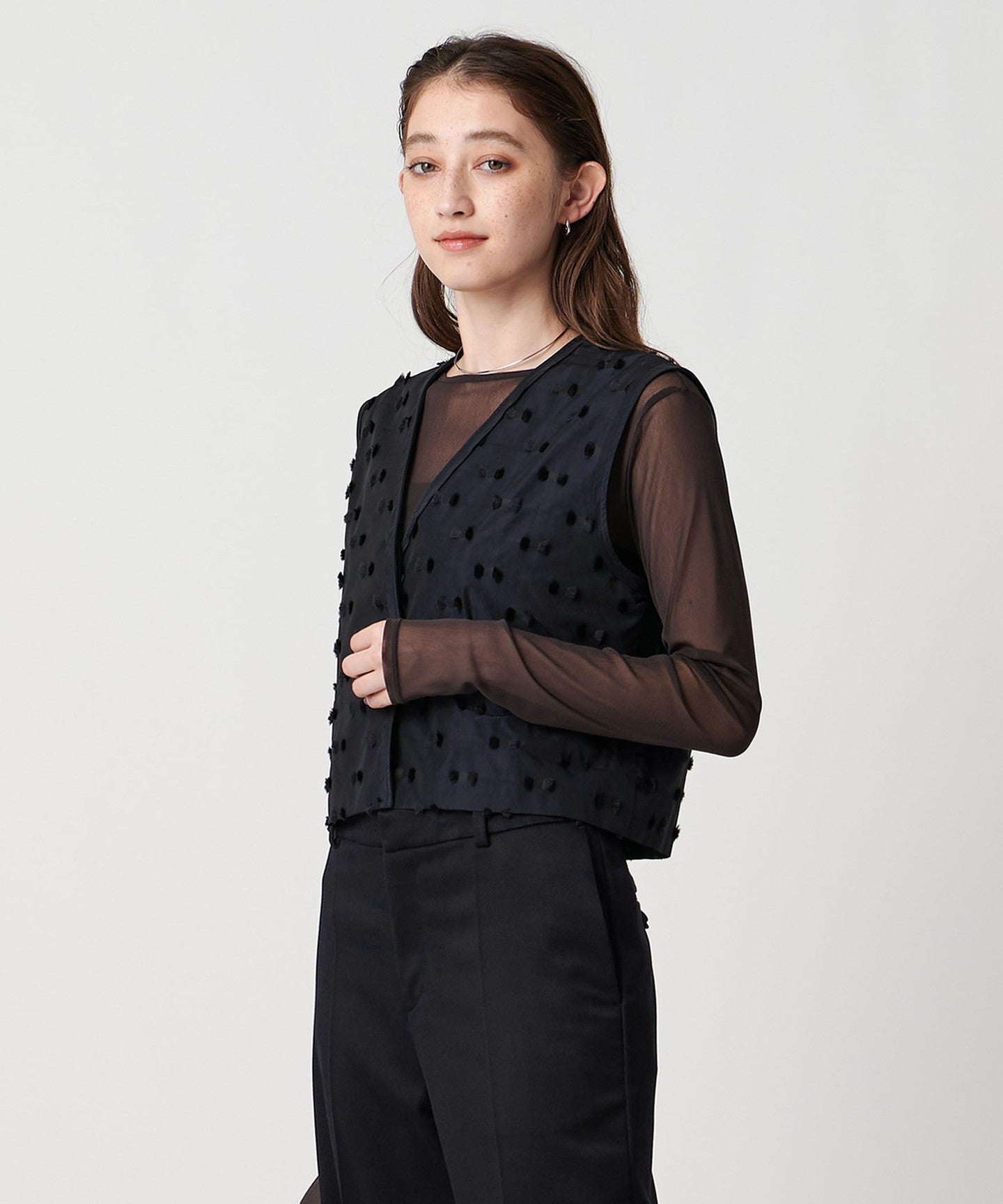 A classy short vest that shows off its material