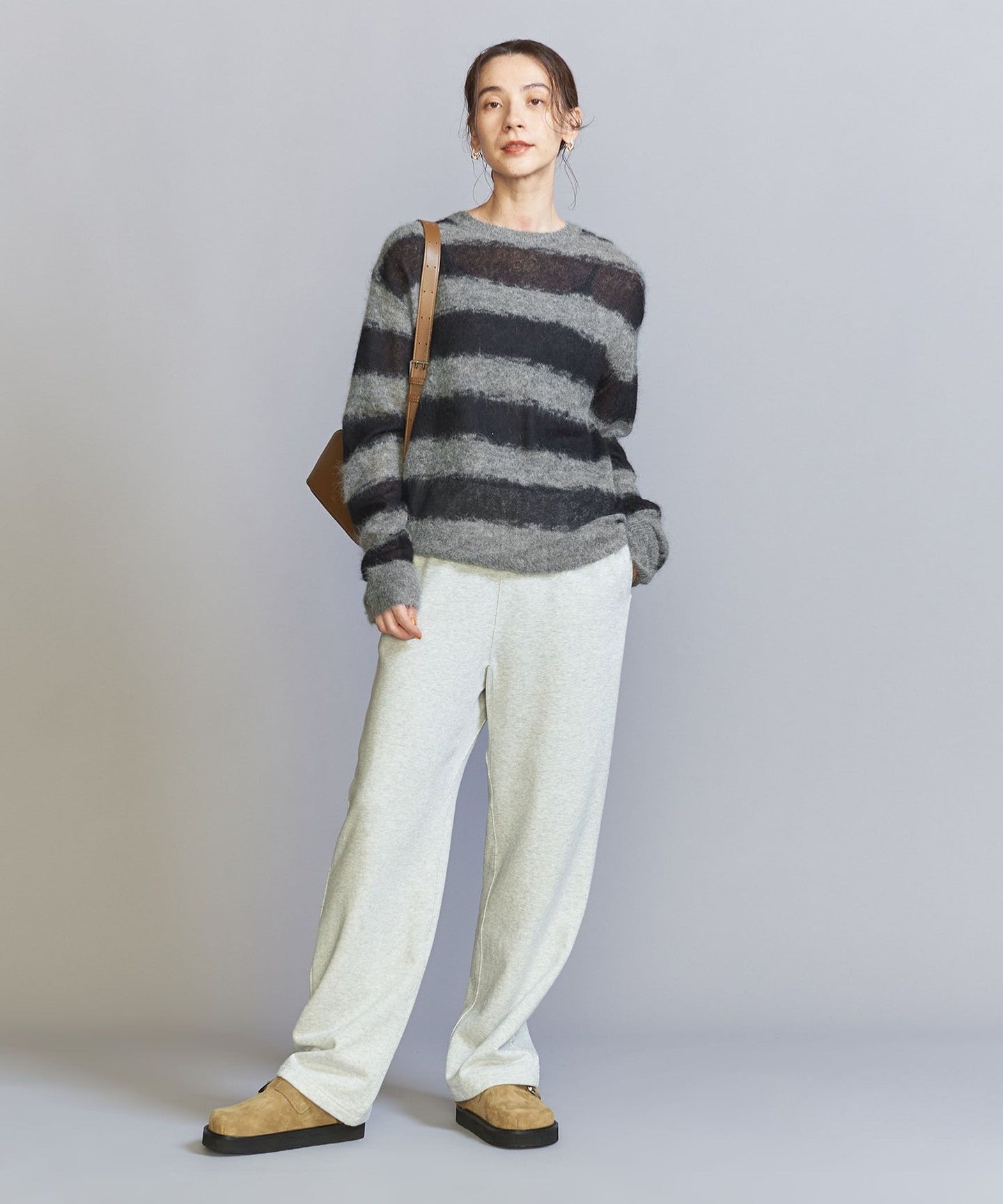 The yarn used is alpaca nylon, which has a fluffy texture and gives a casual impression.