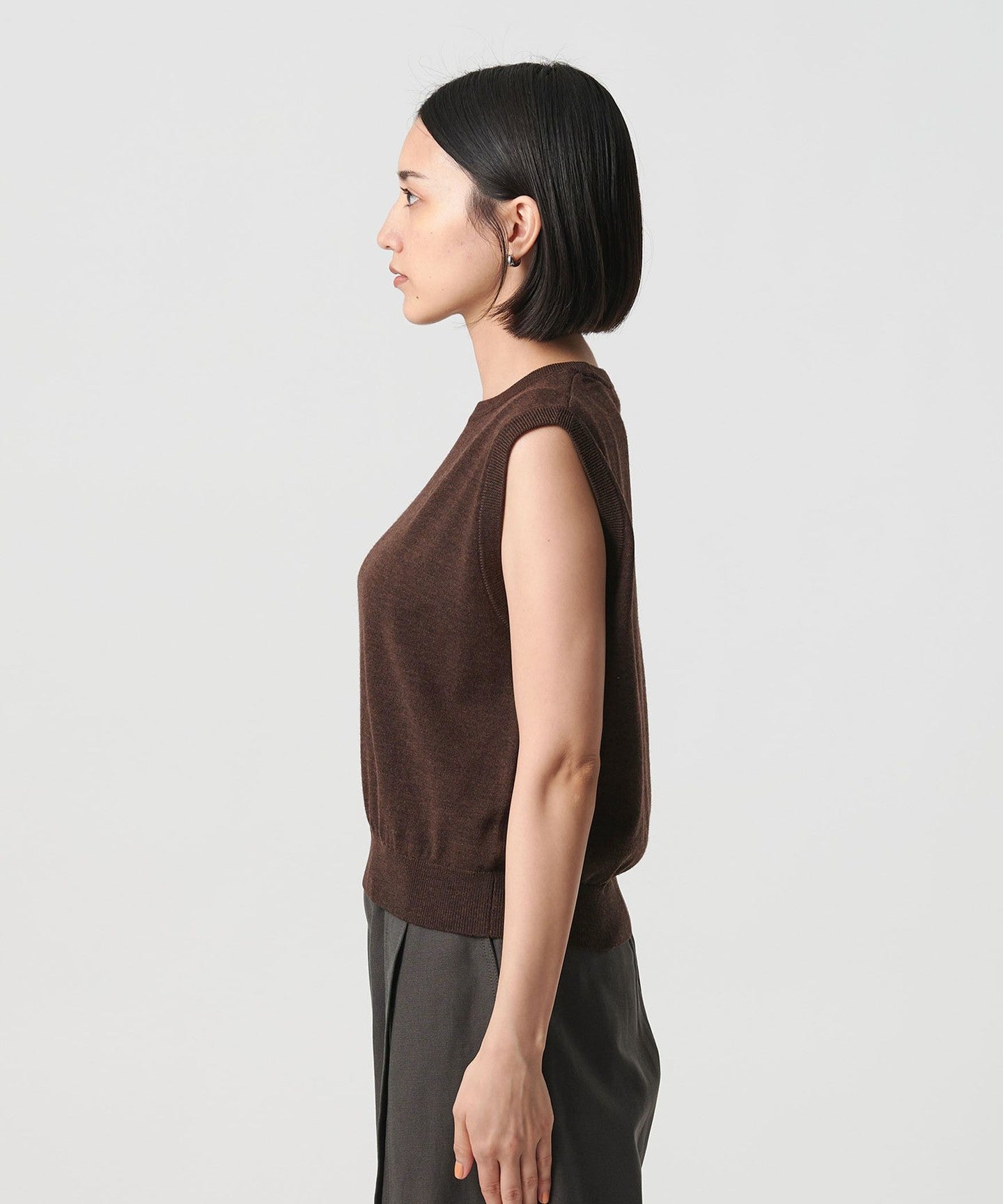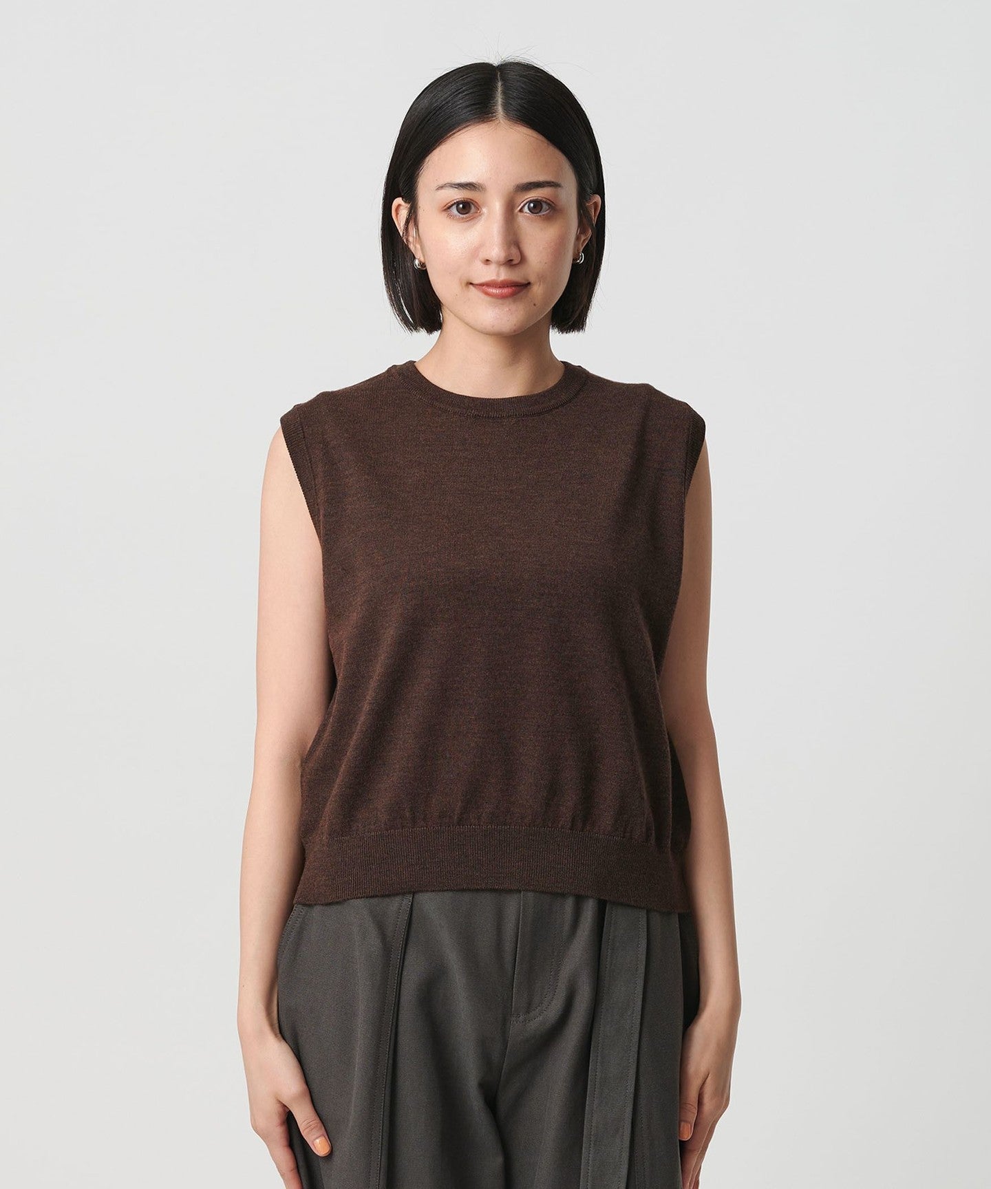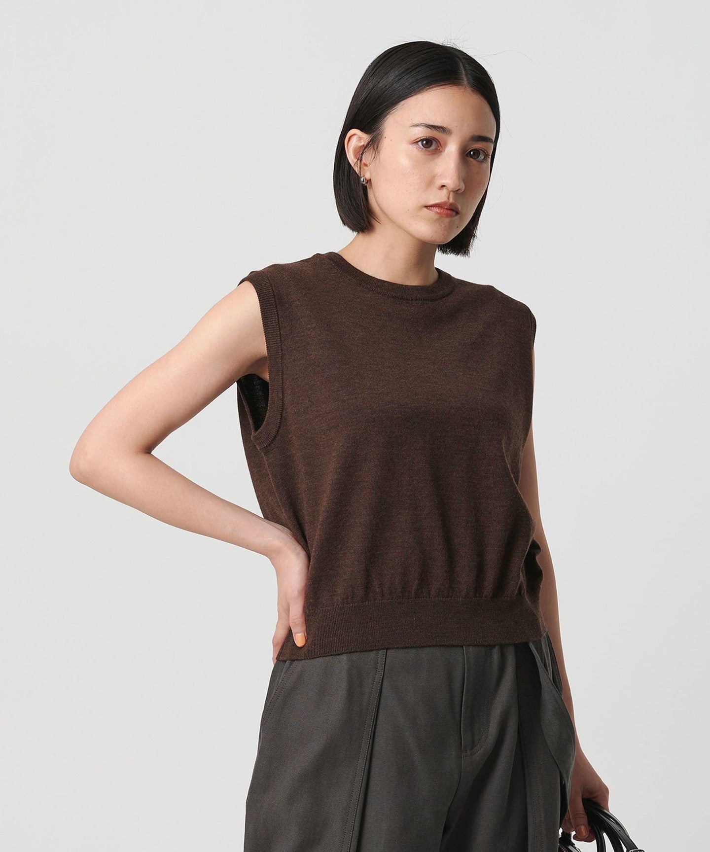 You can wear it as a vest by combining it with an inner layer, or as a sleeveless top on hot days.