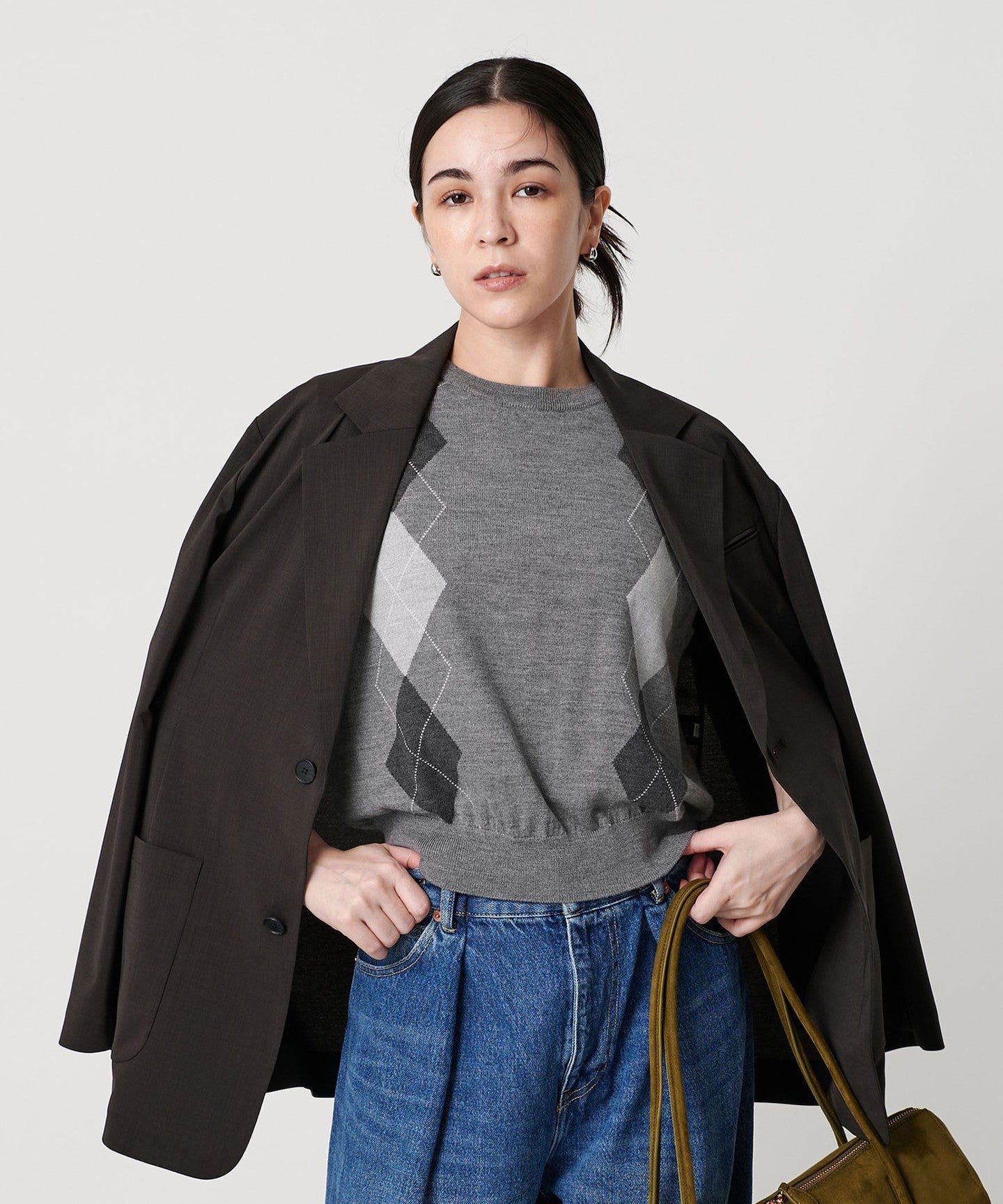 This 100% wool worsted knit has a subtle brushed texture, making it easy to wear throughout the year.
