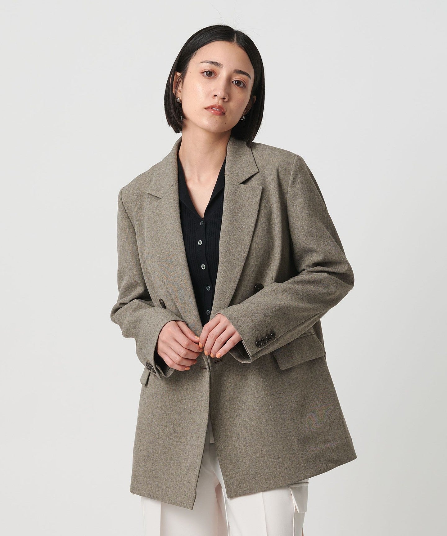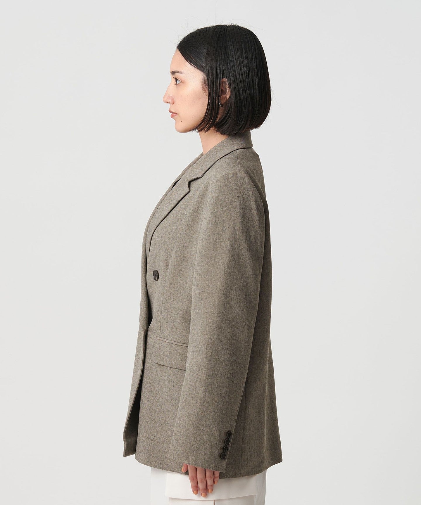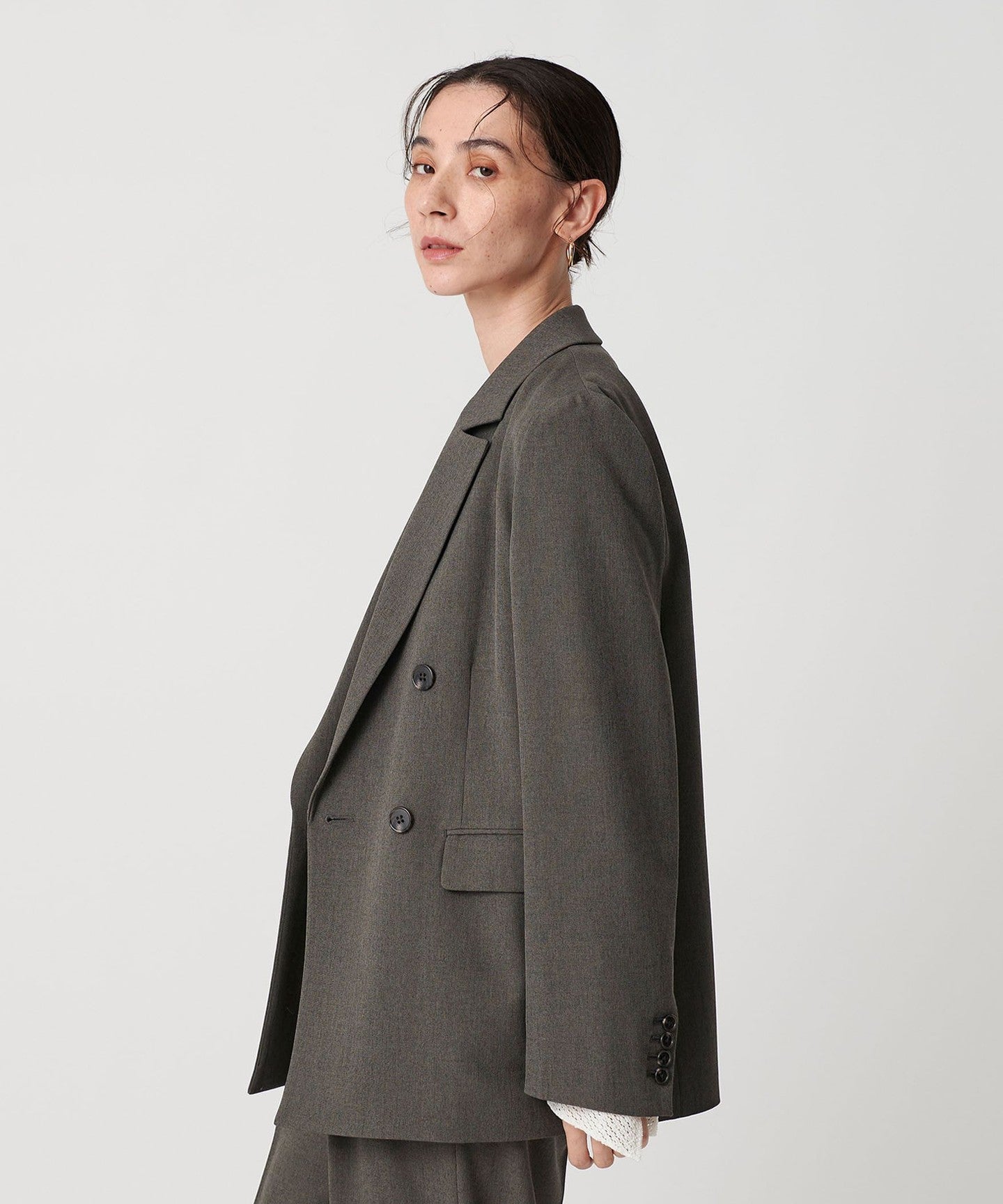 It can be worn as a set with pants made from the same material for work, and we also recommend wearing it as a casual outfit with a hoodie underneath and sneakers.