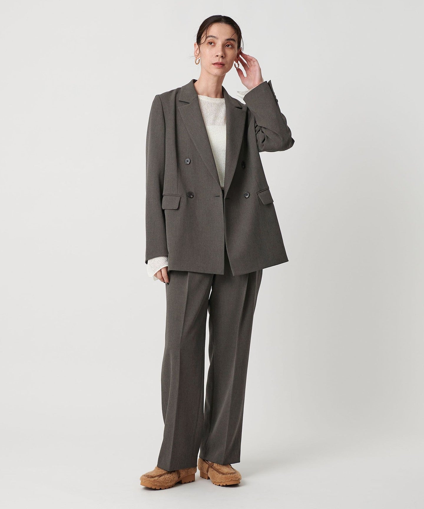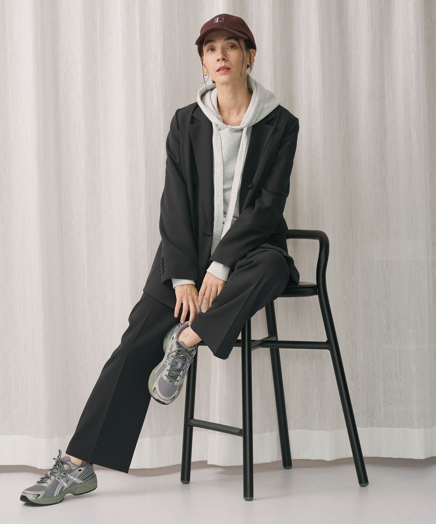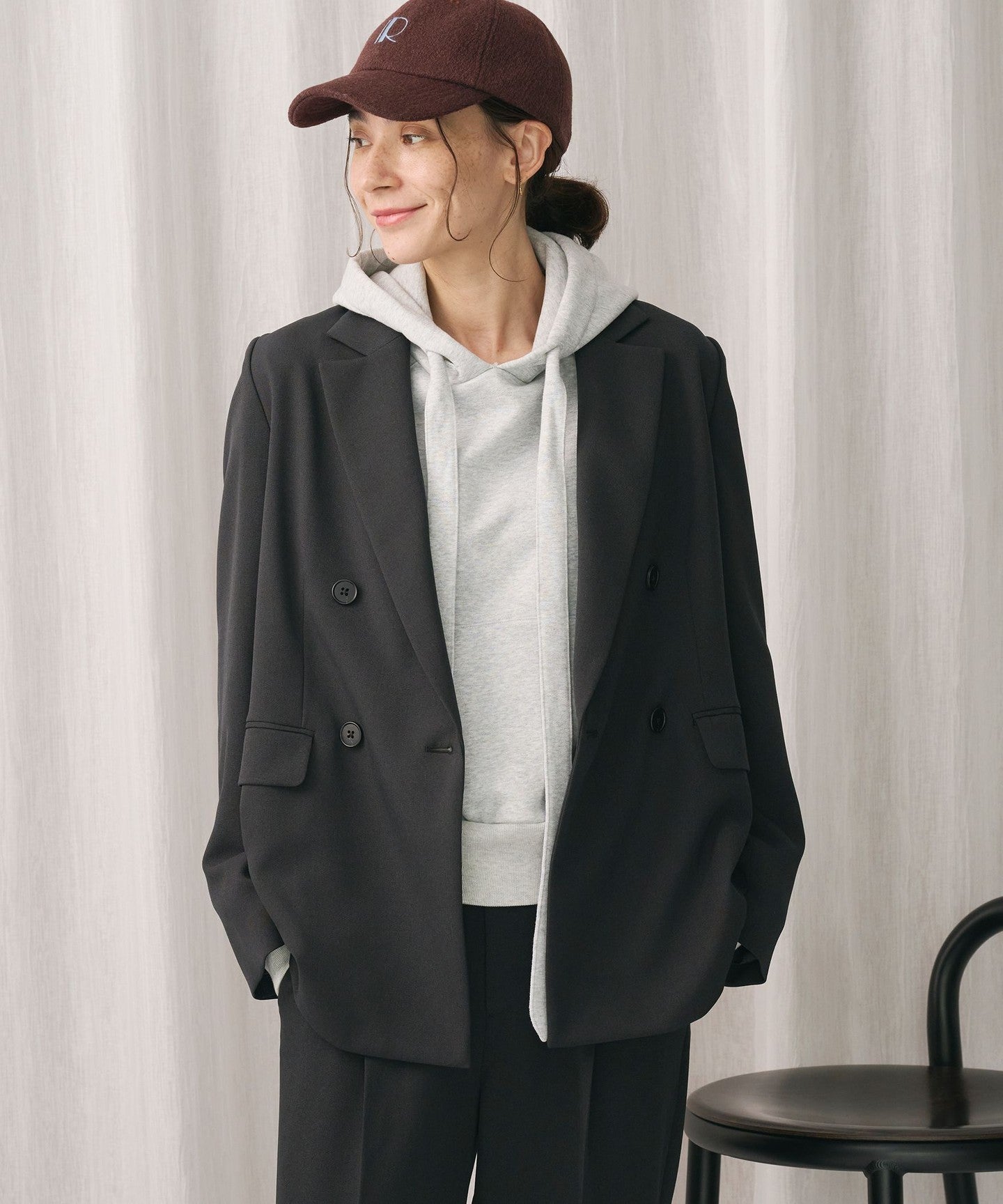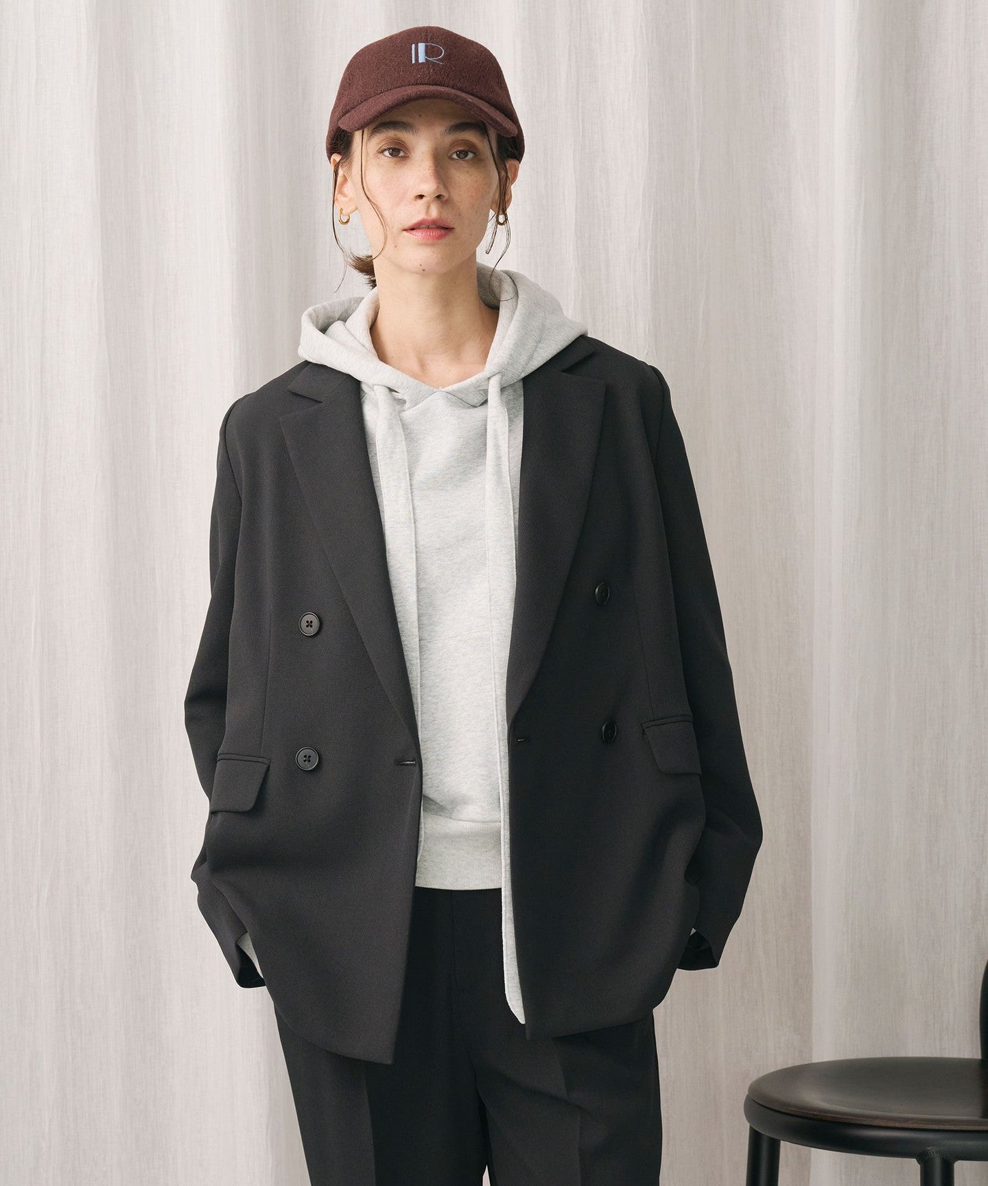 It can be worn as a set with pants made from the same material for work, and we also recommend wearing it as a casual outfit with a hoodie underneath and sneakers.