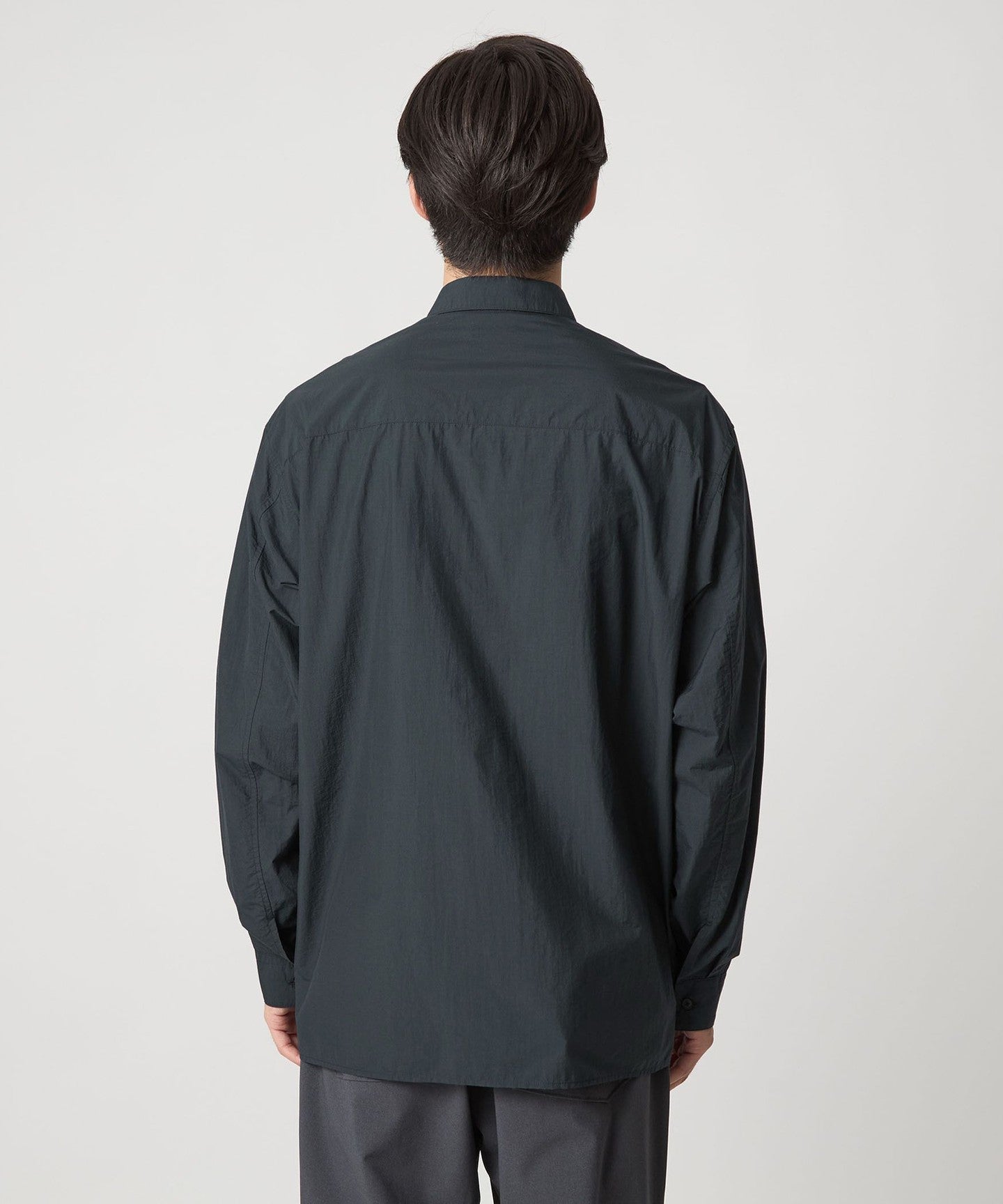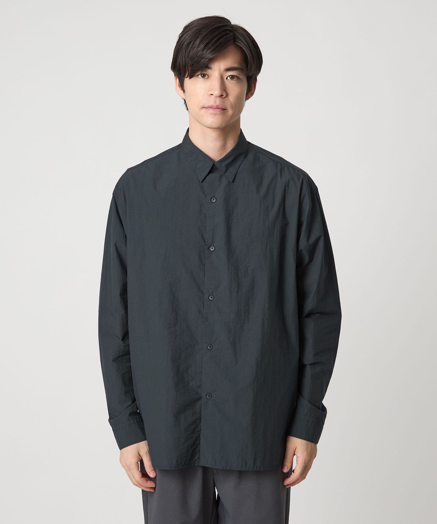 This is a regular collar shirt with a loose, relaxed silhouette.