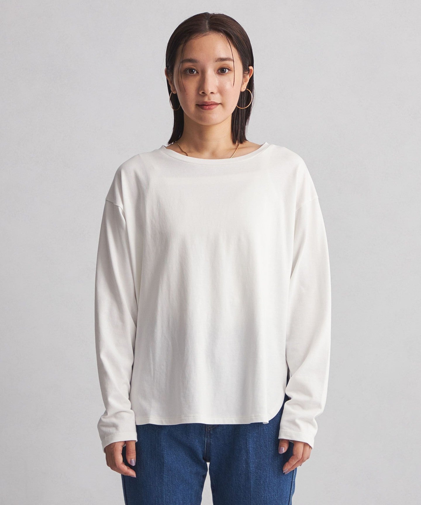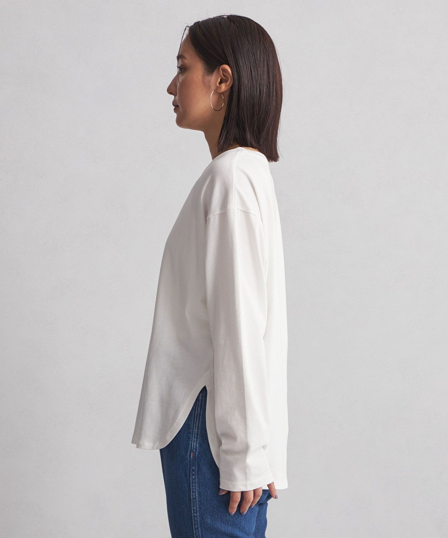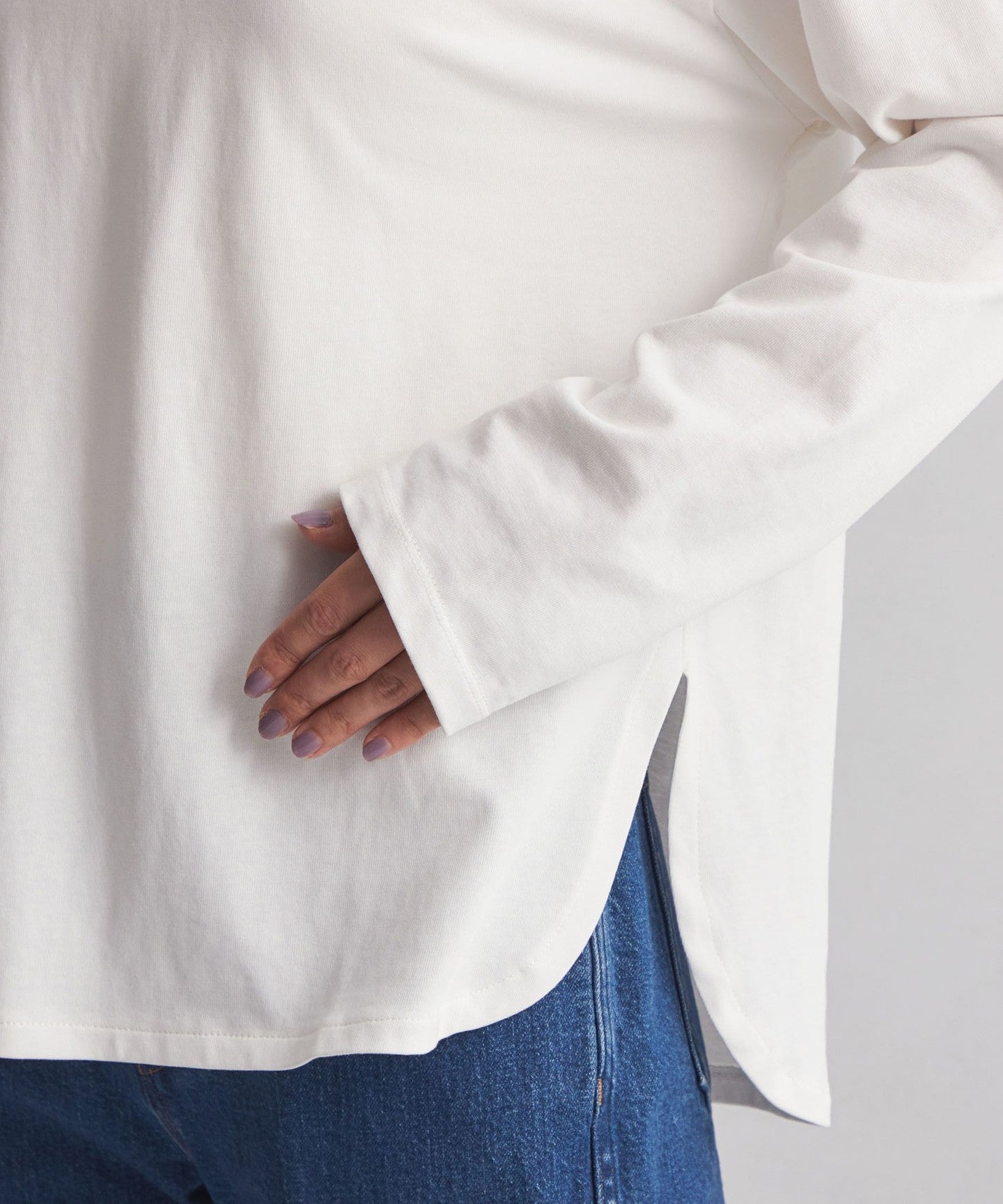 The hem is rounded so that it can be worn alone or layered.