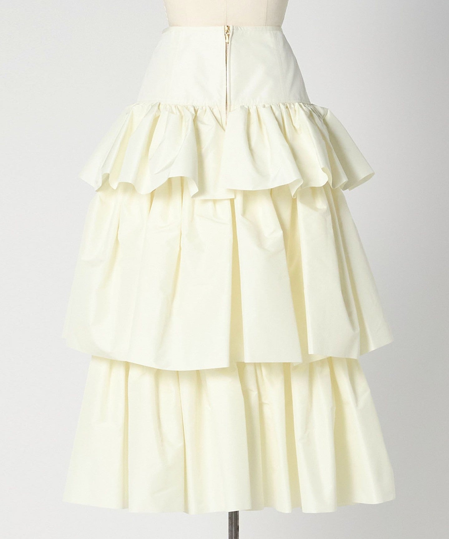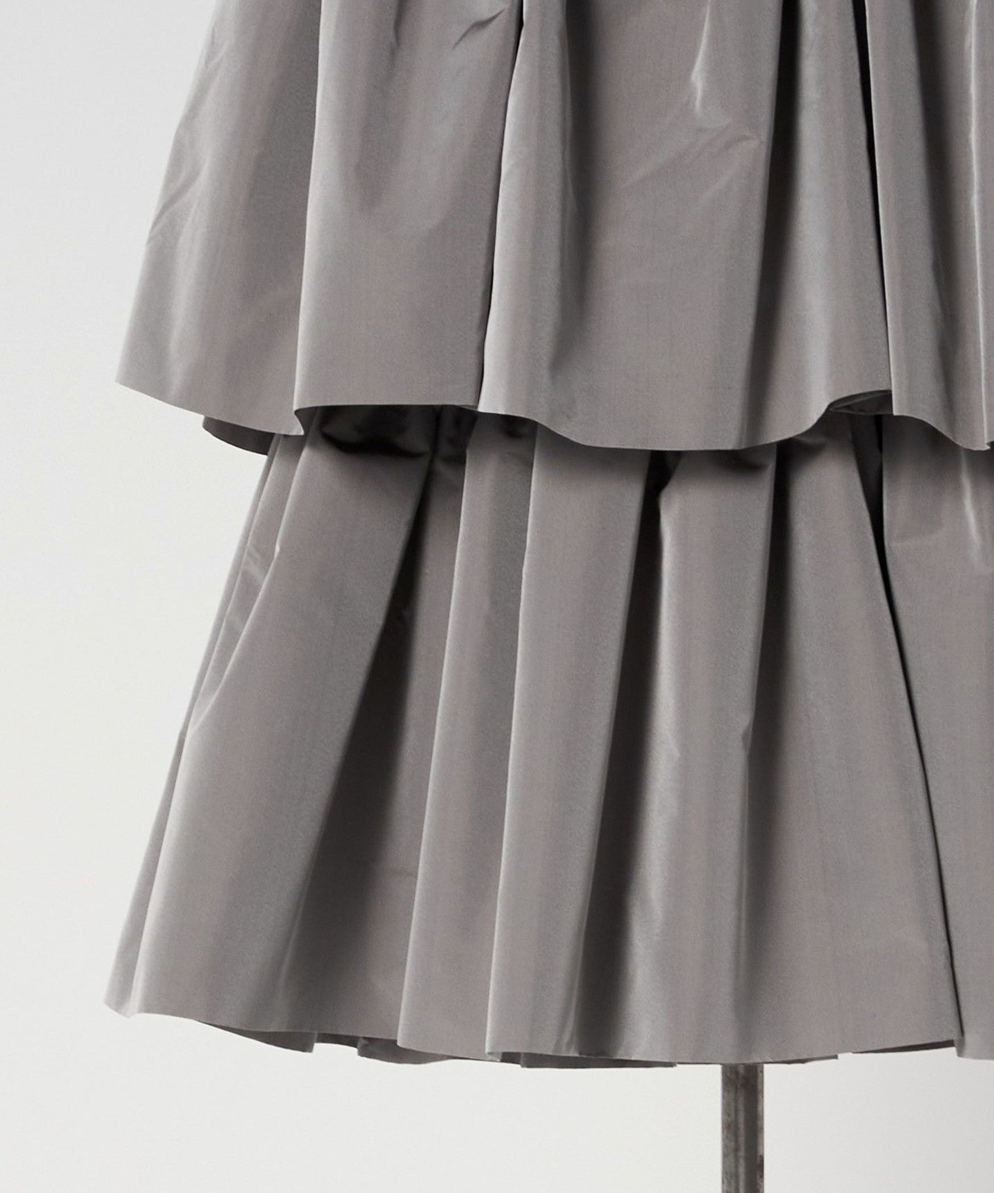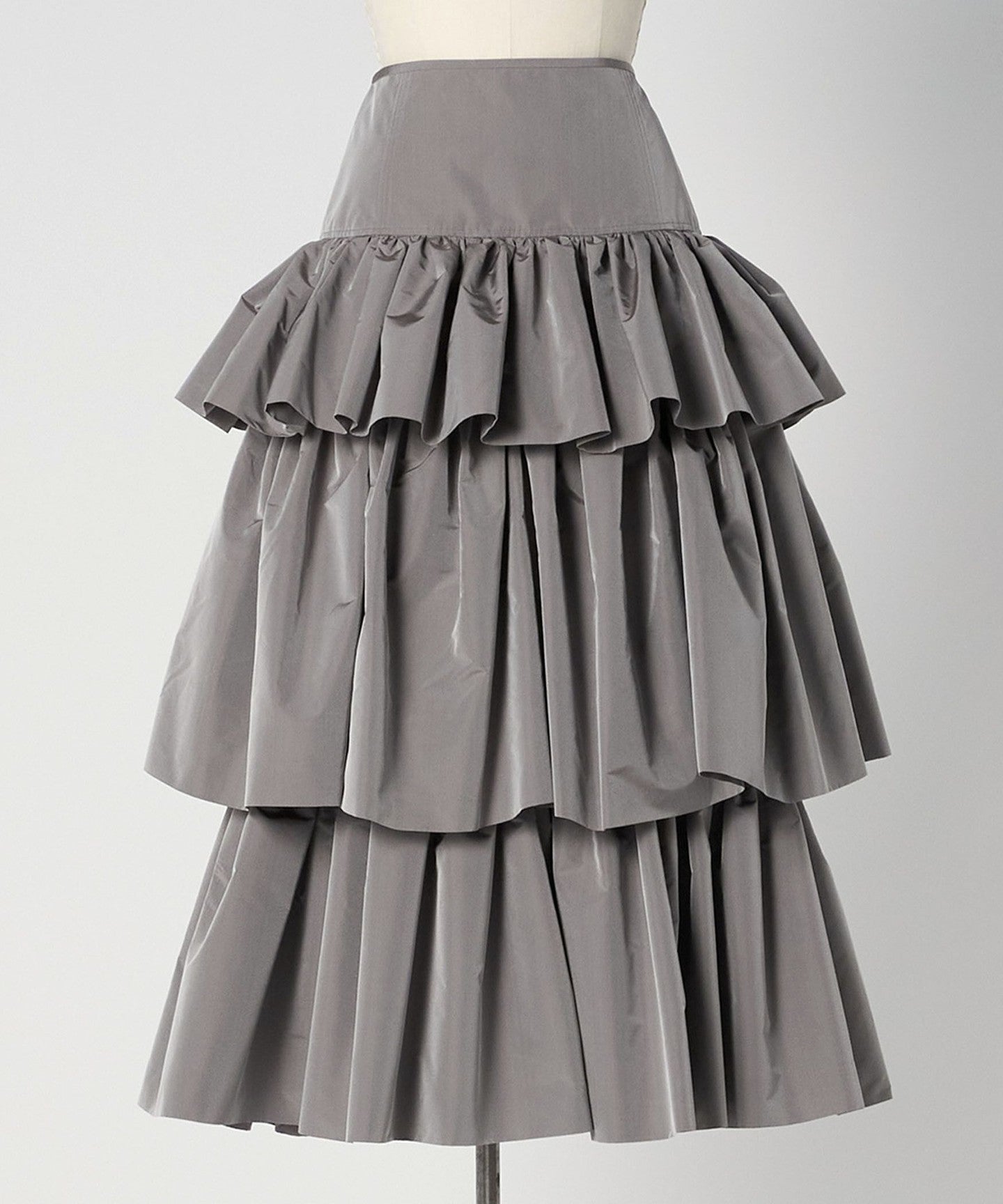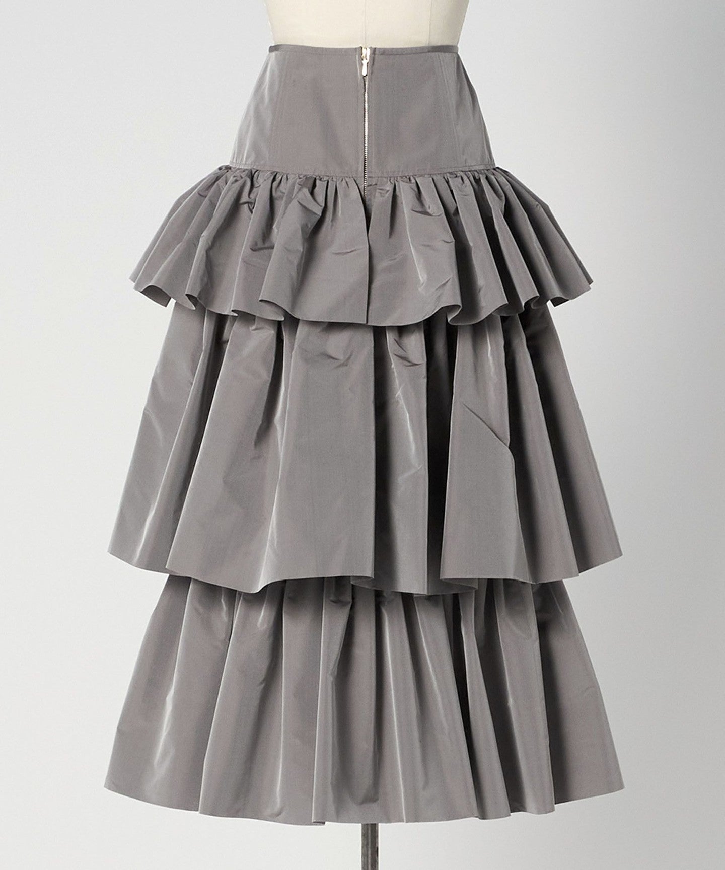 A long skirt with an impressive three-tiered frill design of varying lengths.