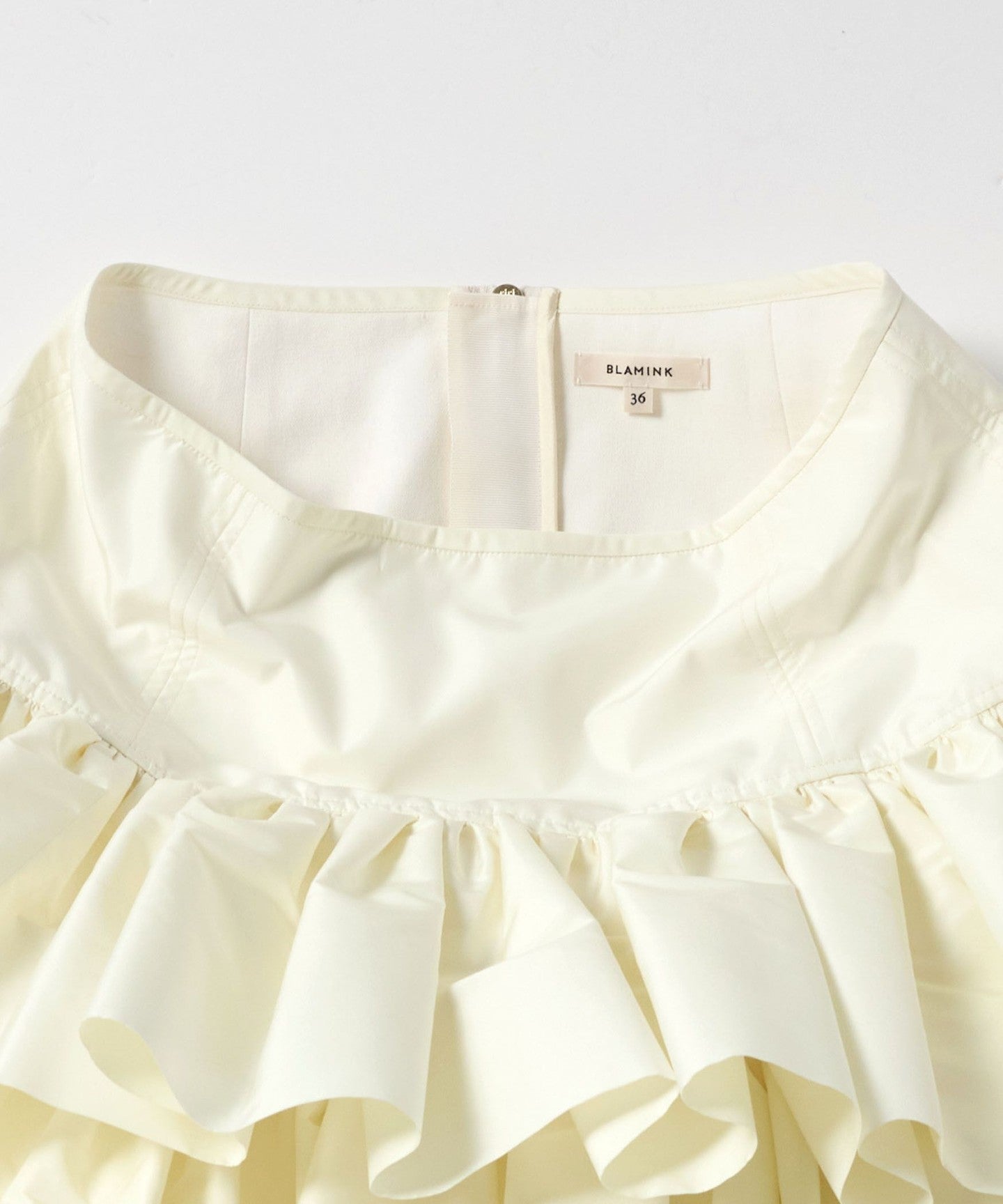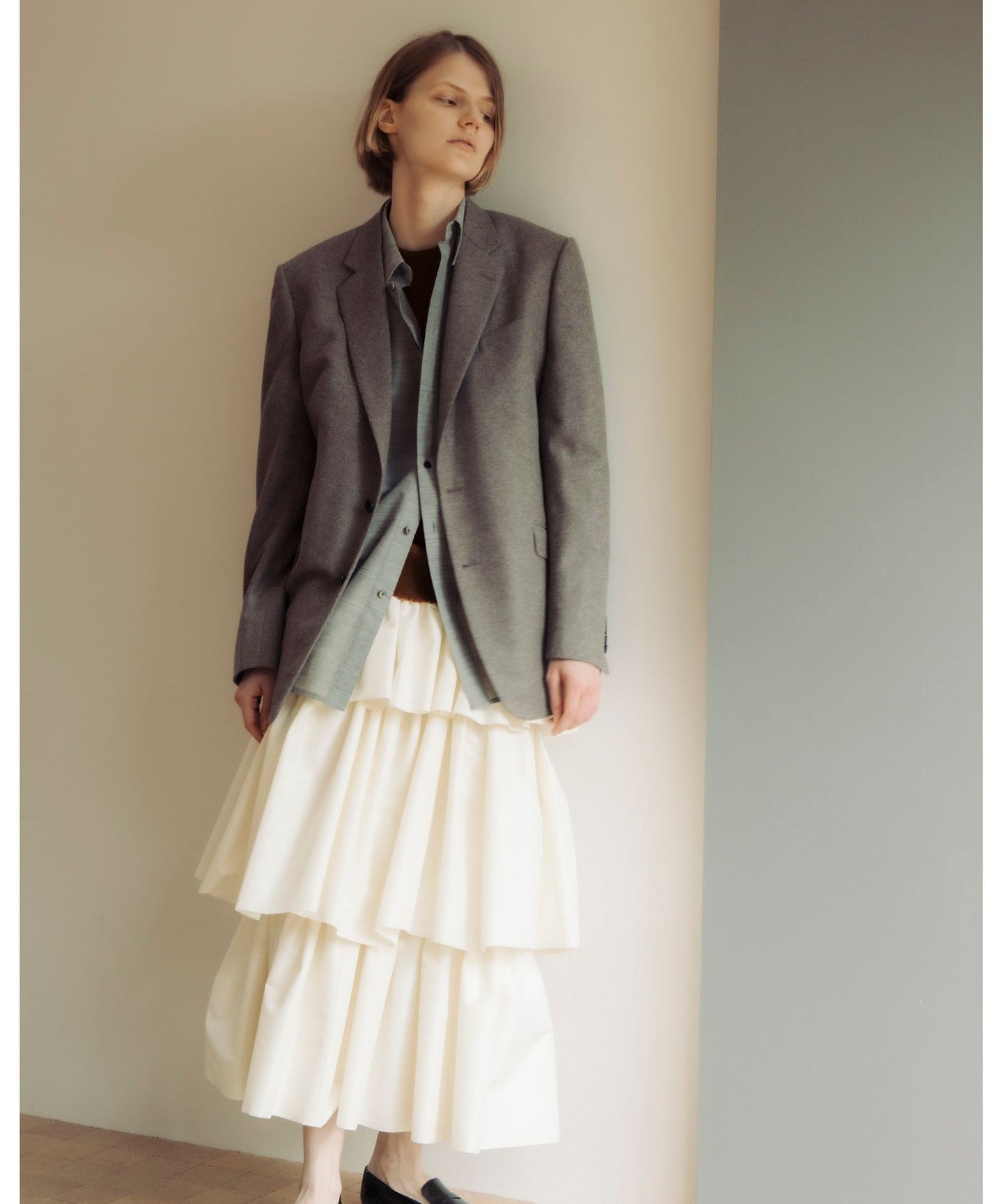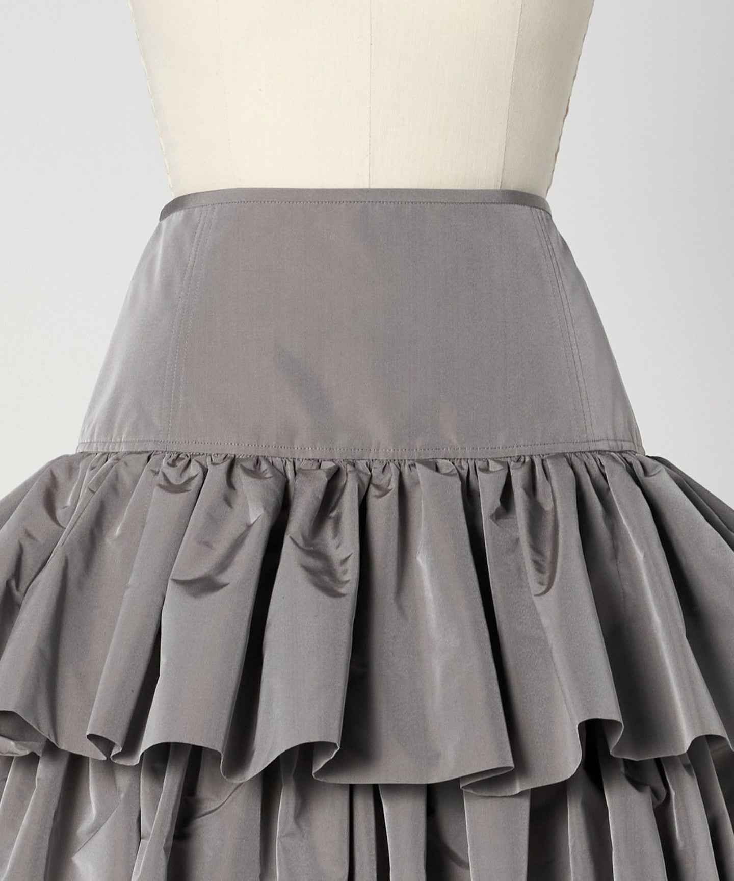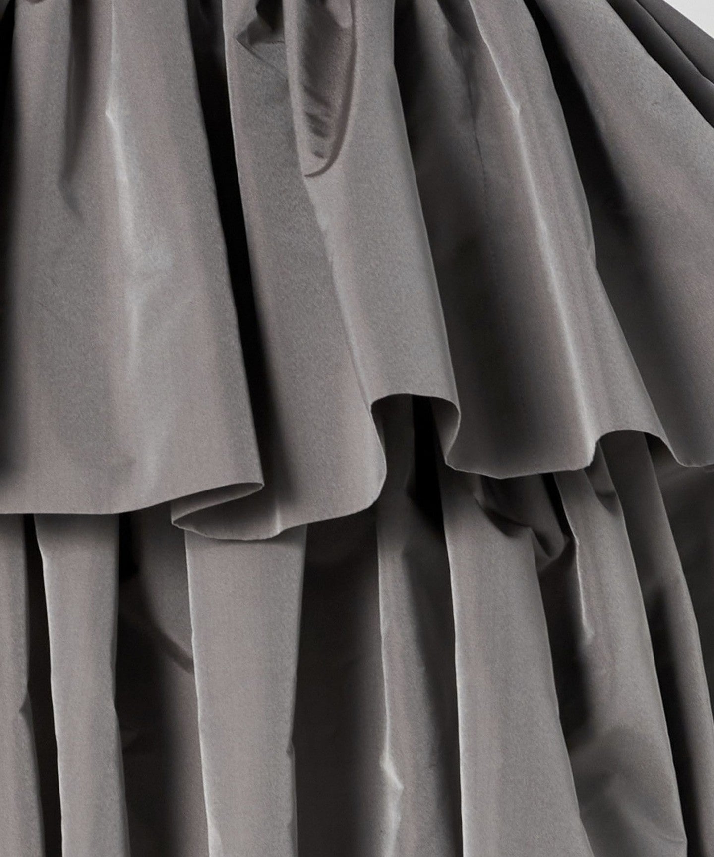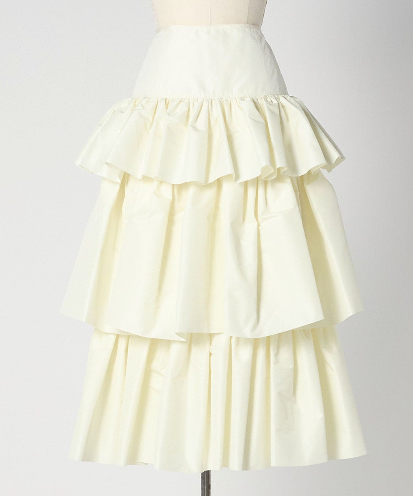 A long skirt with an impressive three-tiered frill design of varying lengths.